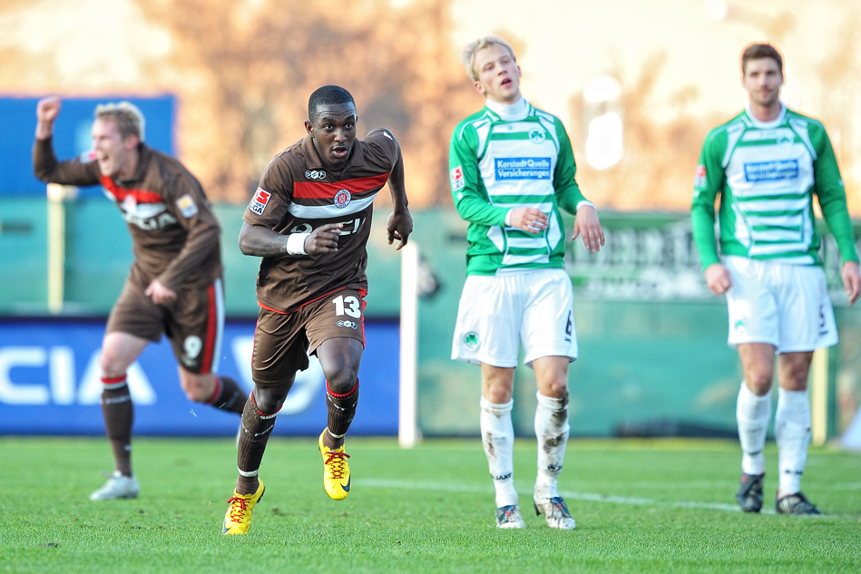 Und dann kam die zweite Minute der Nachspielzeit. Deniz Naki schiesst direkt vor meinem Kameraauge das 3:1 und als ich die Kamera runternehme, sehe ich, dass es keinen Anstoss gibt. Ich frage meine umstehenden Kollegen und keiner versteht, warum das Tor nicht gewertet wird. Sekunden später löse ich meine Kamera wieder aus, um jubelnde Fürther zu fotografieren. 2:2!