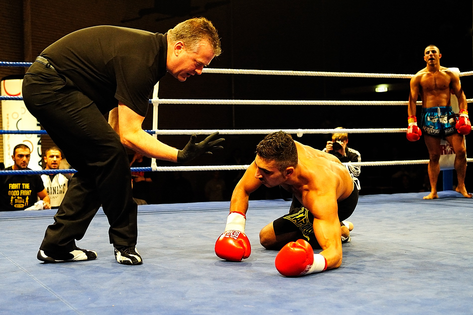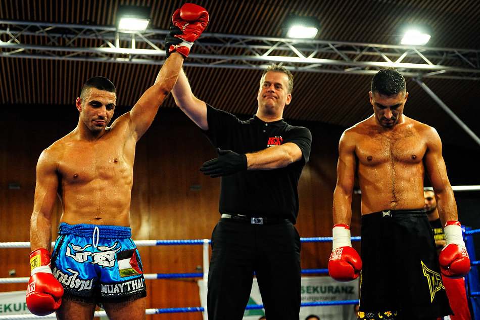 Kurz vor Ende der ersten drei Minuten traf Muhareb seinen Gegner allerdings so unvermittelt, aber punktgenau, dass der Kampf ein jähes Ende nahm. Ashkan Gohar brauchte länger, um wieder mit eigener Kraft auf seinen zwei Beinen zu stehen als der Kampf gedauert hatte.