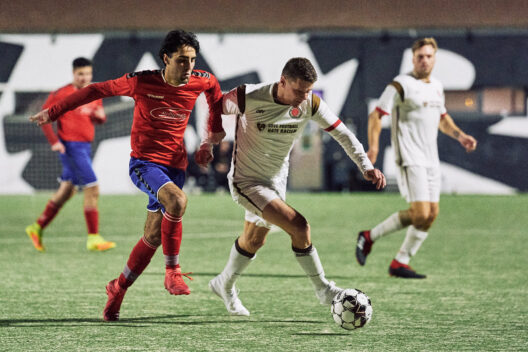 Nach jedem Tor werden übrigens die Seiten gewechselt. Das Spielfeld selbst ist 270 m x 180 m groß, und das Tor ist so breit wie ein Fußballtor, aber nicht nach oben begrenzt.