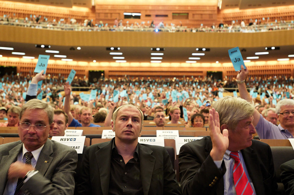 Gestern abend hatte ich das „Vergnügen“ die außerordentlichen Mitgliederversammlung des Hamburger Sport Vereins fotografieren zu dürfen. Wegen der kürzlich stattgefundenen Trennung vom langjährigen Sportchef Dietmar Beiersdorfer war das öffentliche Interesse gegeben. Solche Versammlungen zu fotografieren ist nicht besonders aufregend, denn die Qualität der Wortbeiträge kann schlecht auf Pixel gebannt werden und die Motive, die die anwesenden Fotografen ablichten können, unterscheiden sich kaum. Trotzdem waren wieder fast zwei Handvoll Kollegen anwesend und es war klar, dass alle die gleichen Bilder machen würden.