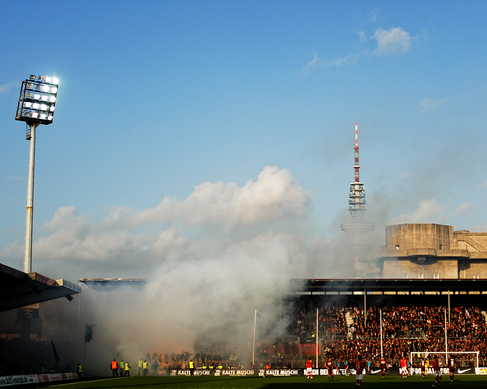 Wahrscheinlich hat der FC St.Pauli dieses Spiel gegen Cottbus nicht gewonnen, weil es nicht geregnet hat. Phasenweise konnte ich sogar Sonne genießen. Zum Fotografieren gab es nur friedliche Fans auf der einen Seite und absolute Vollpfosten auf der anderen Seite – kleiner Vorgeschmack auf das nächste Auswärtsspiel, dann gegen Rostock.