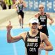 Ich war schon um 6.30 Uhr im Pressezentrum und habe meine Akkreditierung abgeholt. Dabei gleich einen sehr freundlichen und hilfreichen Menschen vom Veranstalter upsolut kennen gelernt, der mir den Weg zum DRK geebnet hat. Das war wichtig, damit ich auf ein Boot kam, um etwas andere Bilder vom Schwimmen hinzubekommen. Um 10 Uhr war ich wieder zu Hause, habe meine ersten Bilder hochgeladen, gefrühstückt und etwas Schlaf nachgeholt 🙂 Zum Nachmittagsstart der Profis war ich dann wieder an der Strecke und nach dem Zieleinlauf so fertig, dass ich fast die Siegerehrung verpasst hätte.