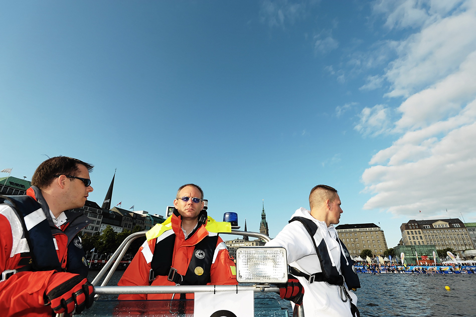 Ich war schon um 6.30 Uhr im Pressezentrum und habe meine Akkreditierung abgeholt. Dabei gleich einen sehr freundlichen und hilfreichen Menschen vom Veranstalter upsolut kennen gelernt, der mir den Weg zum DRK geebnet hat. Das war wichtig, damit ich auf ein Boot kam, um etwas andere Bilder vom Schwimmen hinzubekommen. Um 10 Uhr war ich wieder zu Hause, habe meine ersten Bilder hochgeladen, gefrühstückt und etwas Schlaf nachgeholt 🙂 Zum Nachmittagsstart der Profis war ich dann wieder an der Strecke und nach dem Zieleinlauf so fertig, dass ich fast die Siegerehrung verpasst hätte.