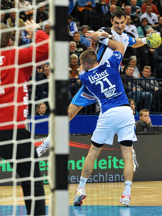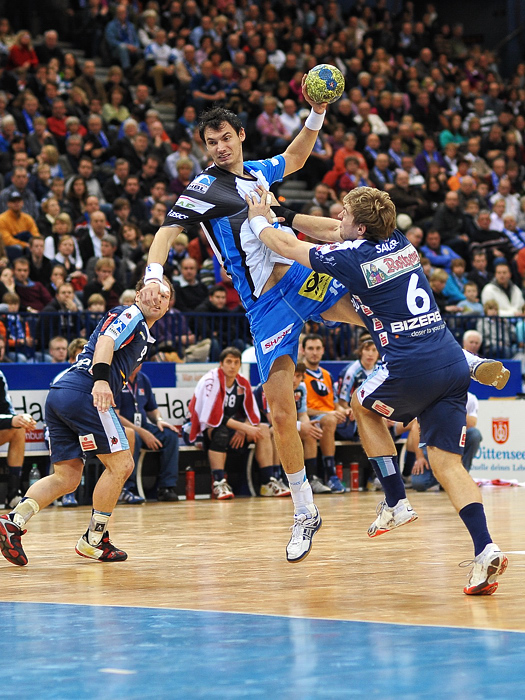 Bei den Bildern zu den beiden Spielen bitte ich die Fotografie-interessierten mal auf die Spielszenen zu achten. Beim Spiel gegen Balingen habe ich nämlich meine 85er Festbrennweite genutzt und diese mit Blende 2.5 verwendet. Die Spielszenen beim Spiel gegen Grosswallstadt sind hingegen mit meinem 80-200 Zoom mit Blende 4 gemacht. Natürlich habe ich die Bilder vom Balingenspiel etwas stärker beschneiden müssen als beim Grosswallstadtspiel. Dafür konnte ich mit meinem 85er natürlich eine niedrigere ISO Einstellung verwenden (ISO1000).