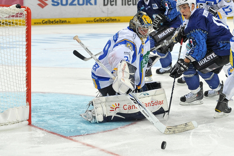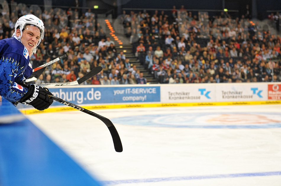 Zweiter Spieltag in der frischen Eishockey-Bundesliga und mein erster Einsatz. In der Sommerpause hat es einen kompletten Umbruch in der Mannschaft der Freezers gegeben. Gerade mal 5 Spieler sind übrig geblieben. Und als ob es im Eishockey nicht eh schon schwer genug wäre, die Spieler unter ihren Helmen zu erkennen, gibt es auf den aktuellen Trikots keine Nummern mehr vorne. Im ersten Drittel habe ich deswegen fast nur Ausschuss produziert. Bilder ohne Namen sind eben nicht zu verkaufen…