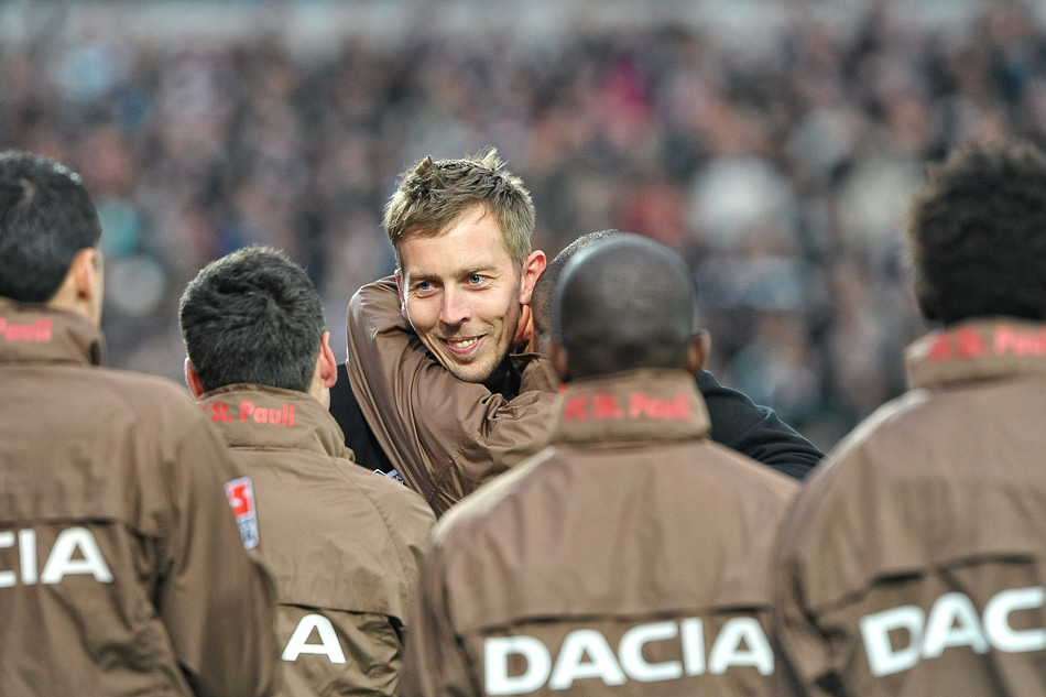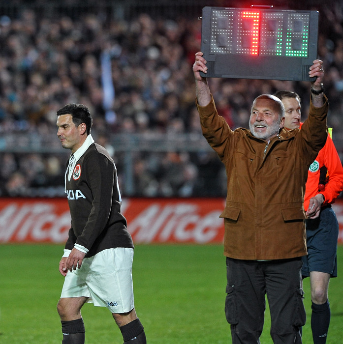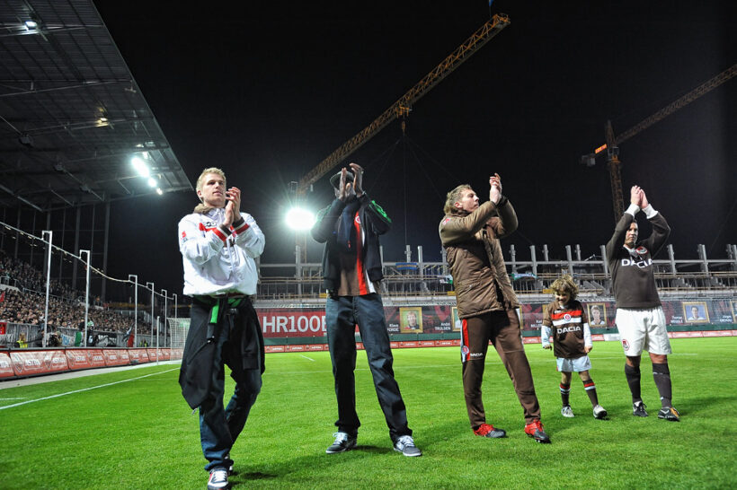Die offensichtliche Kommerzialisierung vom FC St. Pauli nimmt immer groteskere Züge an. Da wird doch tatsächlich die Verabschiedung langjähriger Spieler vor Spielbeginn am Mittelkreis und doch nahezu unter Ausschluss der Öffentlichkeit zelebriert. Nur die Fernsehkameras vom Live übertragenden NDR und dem vereinseigenen Fernsehen konnten nahe genug ran kommen, um Bilder der Danksagungen einfangen zu können. Alle Fotografen standen an der Seitenlinie und schauten sich fragend an. Und ob die Fans was sehen konnten, wage ich zu bezweifeln – ihr könnte ja gerne die Kommentarfunktion nutzen, um mich eines besseren zu belehren.