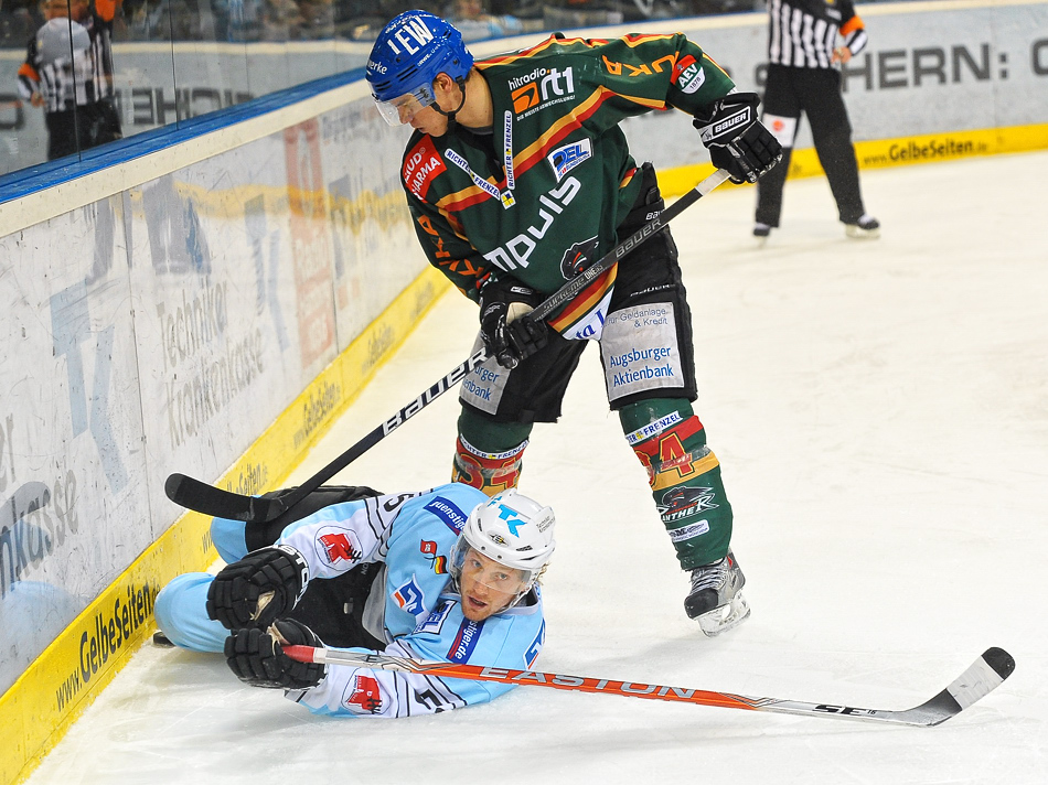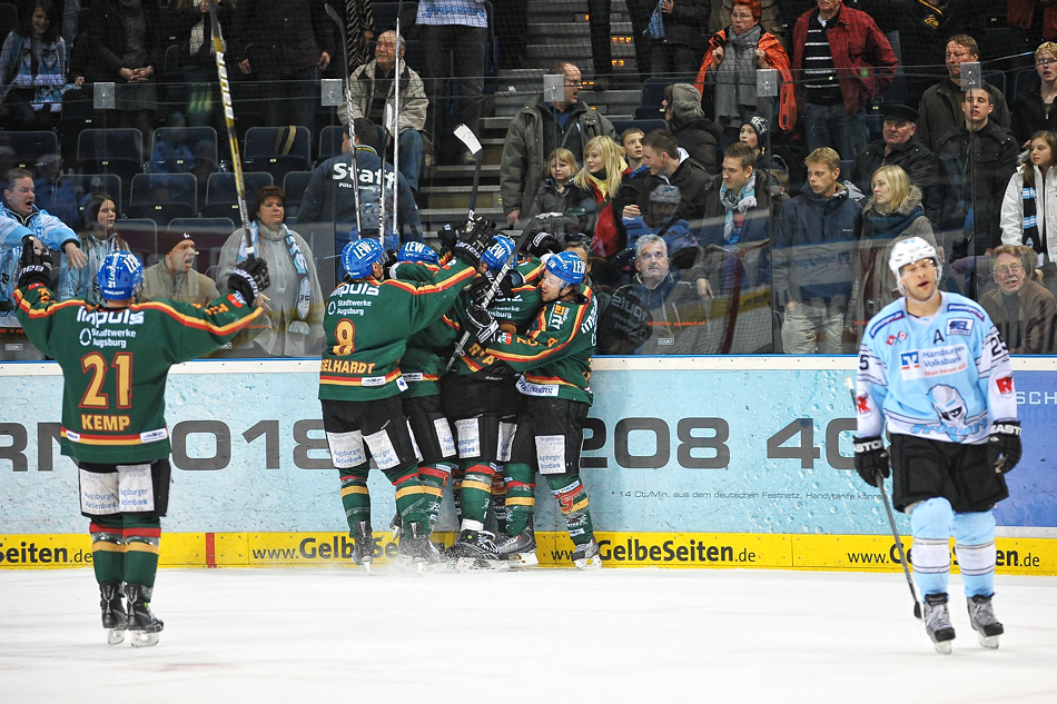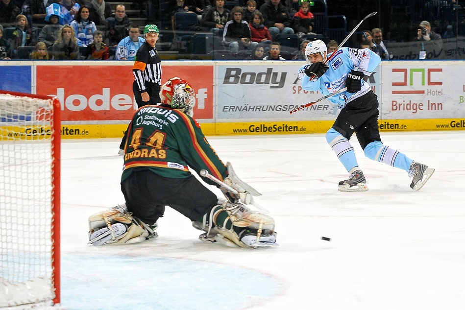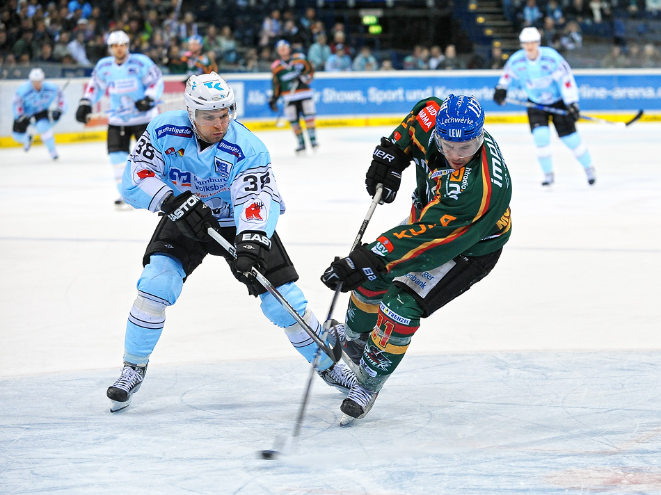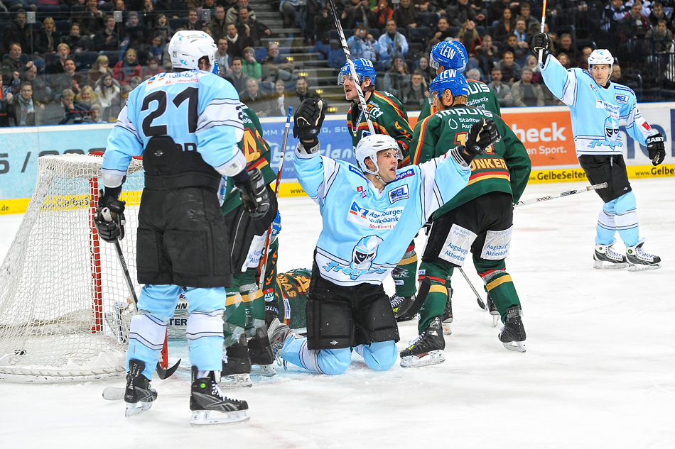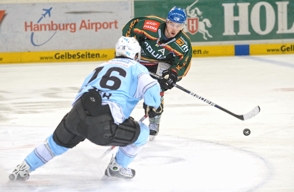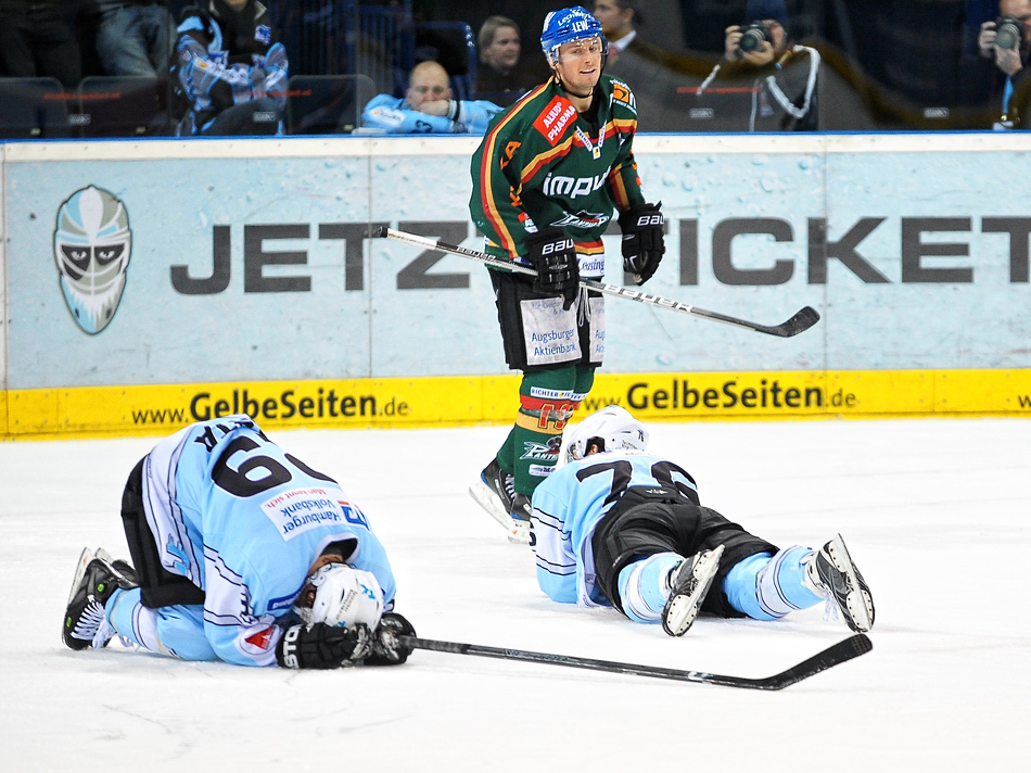 Das war am Freitag ein packendes Spiel – auch wenn es für die Hamburg Freezers sehr unglücklich verlief. Da erspielten sie sich gegen die Augsburg Panther einen 5:2 Vorsprung, müssen den Ausgleich zum 5:5 hinnehmen, gehen mit 6:5 in Führung und schiessen Sekunden vor Schluß in leere Augsburger Tor das vermeintliche 7:5 – doch halt: der Schiedsrichter hat eine Handvorlage gesehen und gibt den Treffer nicht. Praktisch im Gegenzug und somit als letzte Aktion während der regulären Spielzeit fällt das 6:6.