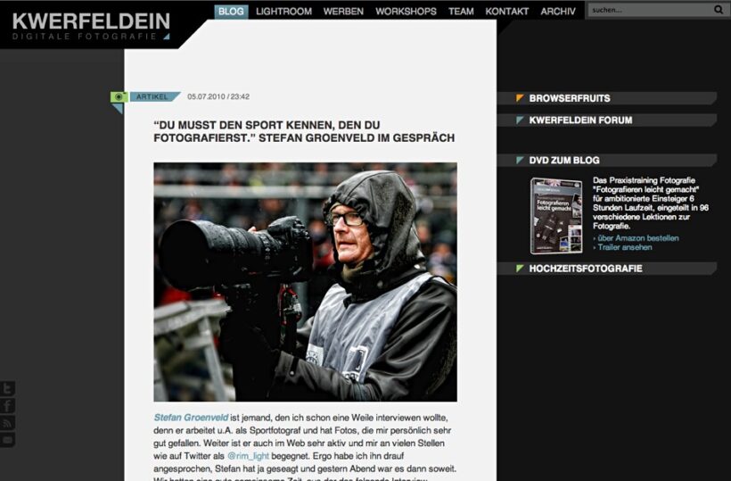Als mich Martin Gommel vor einigen Wochen via Twitter angefragt hat, ob ich ihm ein Interview für seine Seite kwerfeldein.de gebe, habe ich sofort zugesagt. Ich empfinde es als eine Auszeichnung für meine Arbeit an der Kamera und in diesem Blog, wenn eine der größten deutschsprachigen Blogs, die sich mit Fotografie beschäftigen, um ein Interview bitten und ich dort meine Bilder zeigen kann. Außerdem finde ich seine Interviewreihe wirklich lesenswert und dort wurden schon einige tolle Leute vorgestellt.