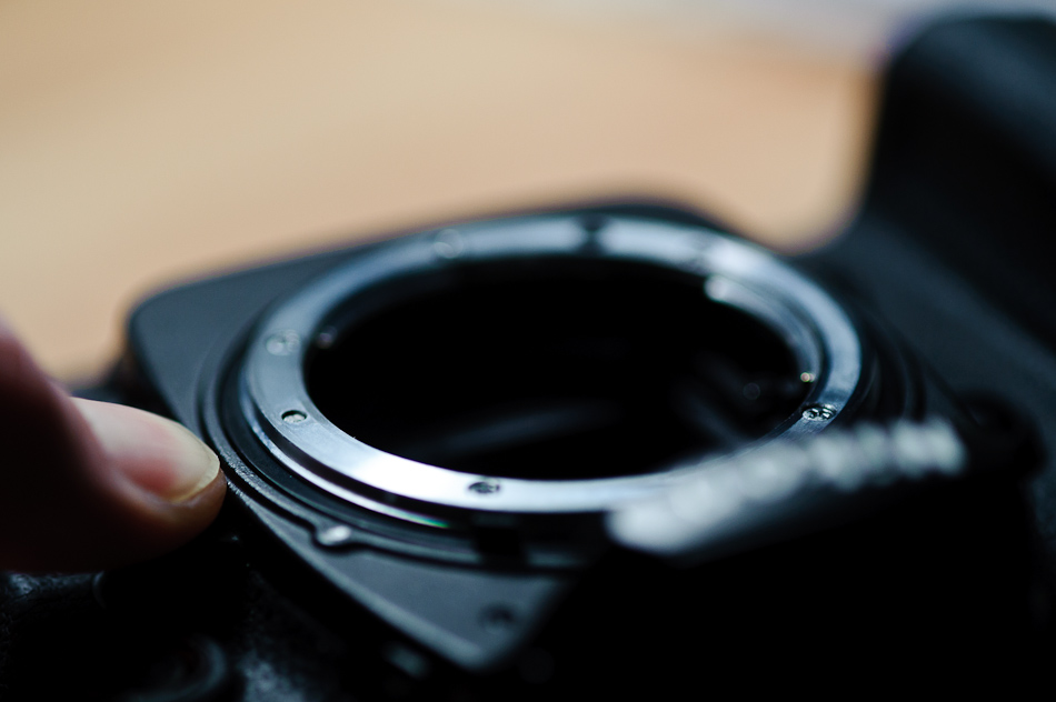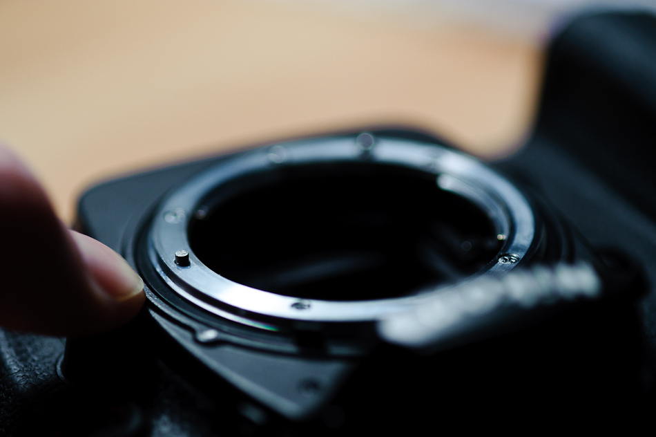 Einen Tipp zum Objektivwechsel gab mir der Techniker noch mit auf den Weg, den ich gerne hier mit euch teile: auch beim Aufsetzen des Objektivs den Entriegelungsknopf gedrückt halten. Am Bajonett befindet sich ein „Sicherungsknopf“ und – falls eure Kamera einen Motor für stangengetriebene Autofokusobjektive hat – einen Antrieb für den Autofokus. Beide Teile sind aus Metall und stehen wenige Millimeter aus dem Bajonett heraus. Beim Objektivwechsel reibt das Objektiv an diesen Metallteilen und sorgt so für sehr feinen Abrieb.