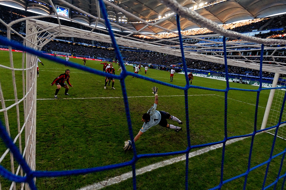 Übrigens können verschiedene Programme die Verzeichnung nachträglich korrigieren. Ich nutze das gerne bei meiner Hintertorkamera, weil dann der ungeübte Betrachter nicht völlig durcheinander kommt. Hier ein Beispiel mit der D200 und dem durch die Software korrigierten Fischauge von einer Parade von Frank Rost beim letzten Heimspiel vom HSV.