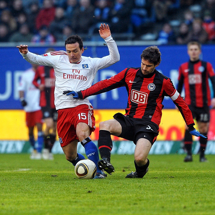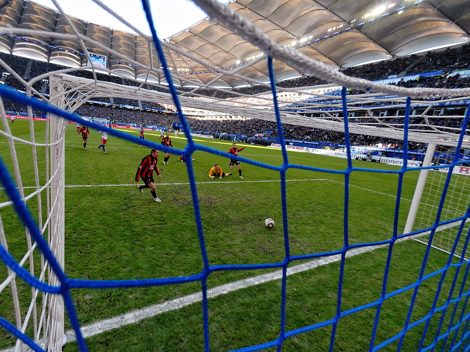 Ich habe meine Technik mit der Hintertorkamera verfeinert und mir nicht nur ein Fisheye gegönnt, sondern auch Gorillapod 🙂 Diesen habe ich dann ins oberen Torgestänge gebastelt, um mal eine andere Perspektive zu bekommen. Natürlich ist das nicht erlaubt, aber die Kamera hat offensichtlich niemand gesehen. Glück gehabt! Immerhin habe ich so zwei Bilder machen können, die ich sonst so nicht gehabt hätte. Zum einen das Tor zum 1:0 und zum anderen eine tolle Parade von Frank Rost kurz vor dem Ende der Partie. Aber es ist schon ein Wahnsinnsaufwand für zwei Bilder – schließlich habe ich 6GB an RAW Daten gesichtet, um die beiden Bilder zu finden.