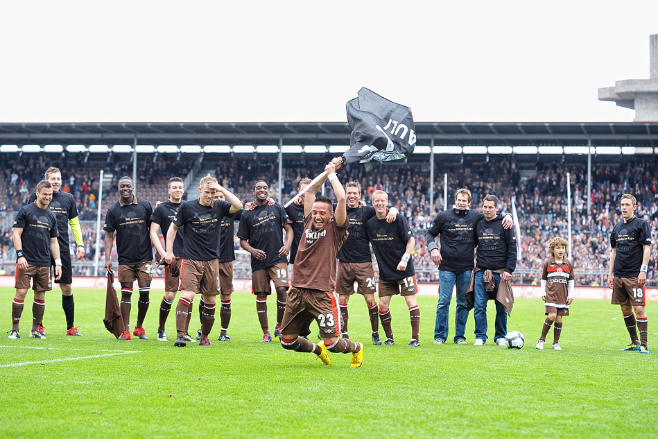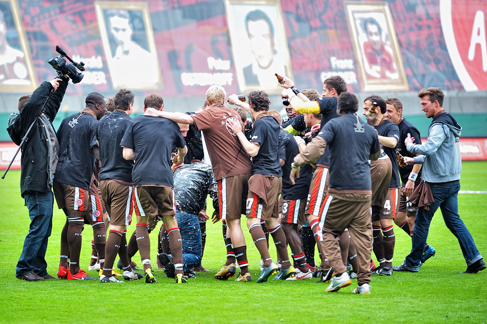 Beim letzten Spiel vom FC St.Pauli in der zweiten Liga – für mindestens ein Jahr und gerne länger – hatte ich während der regulären 90 Minuten irgendwie das Gefühl, dass die braun-weissen Kicker an diesem Tag überhaupt kein Interesse am Fussball hatten. Für sie war – so zumindest meine Empfindung – das letzte Spiel nur eine nötige, aber unwillkommene Unterbrechung der Aufstiegsfeierlichkeiten. Die waren dann aber auch umso schöner…