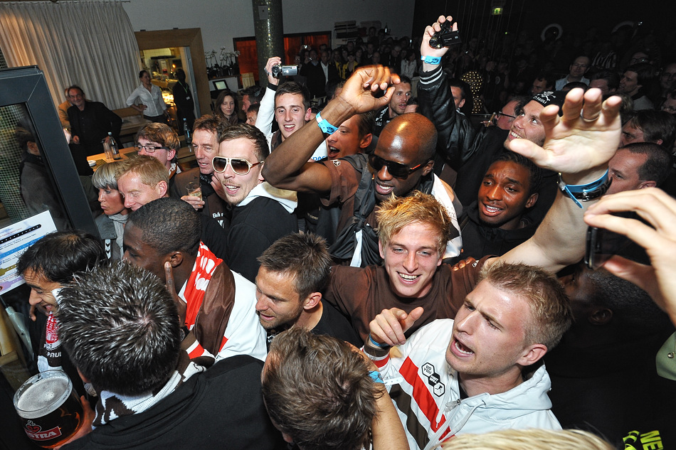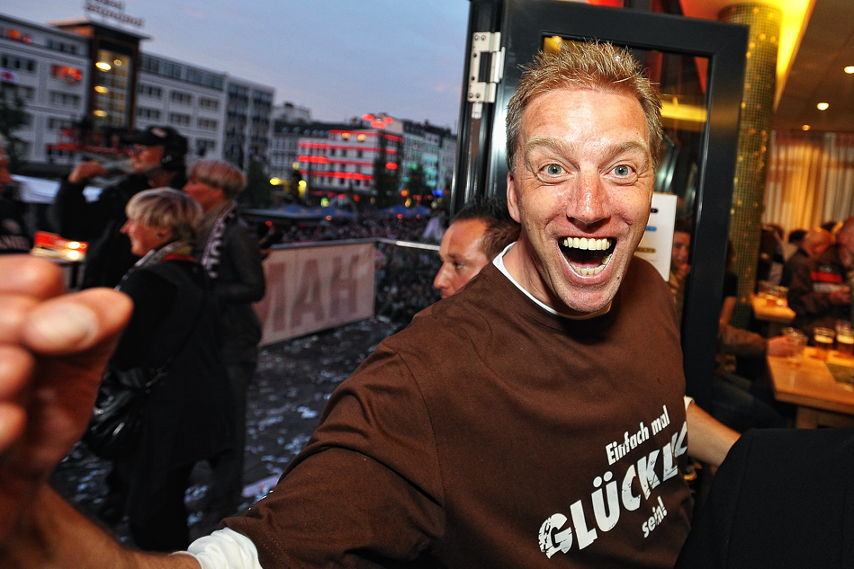 die Paulis können schon richtig feiern. Hab es selber in Fürth miterlebt. Freut mich das sie oben sind. Haben es sich wirklich verdient. Lustig wie der Thorge von F4 auf dem Trainer Foto schaut 😉