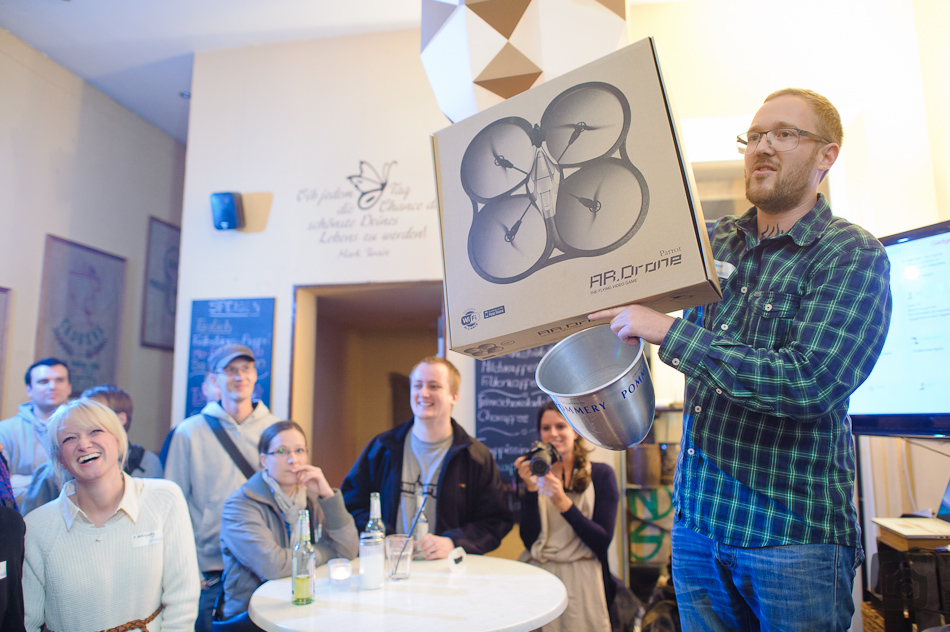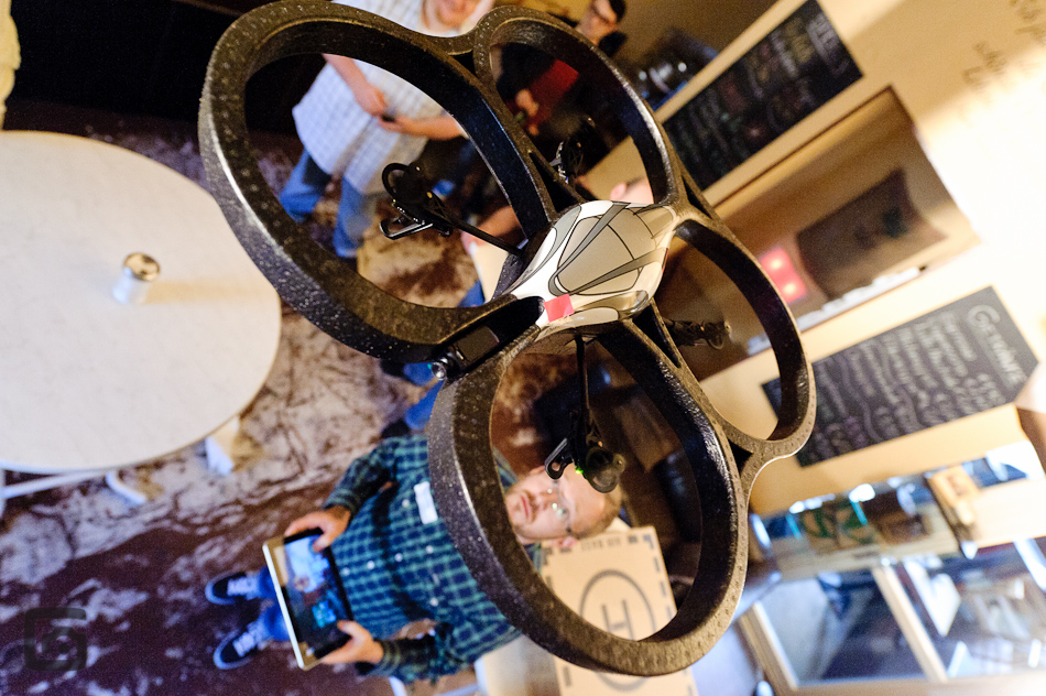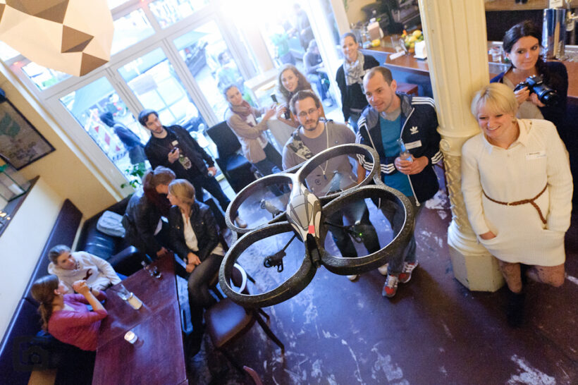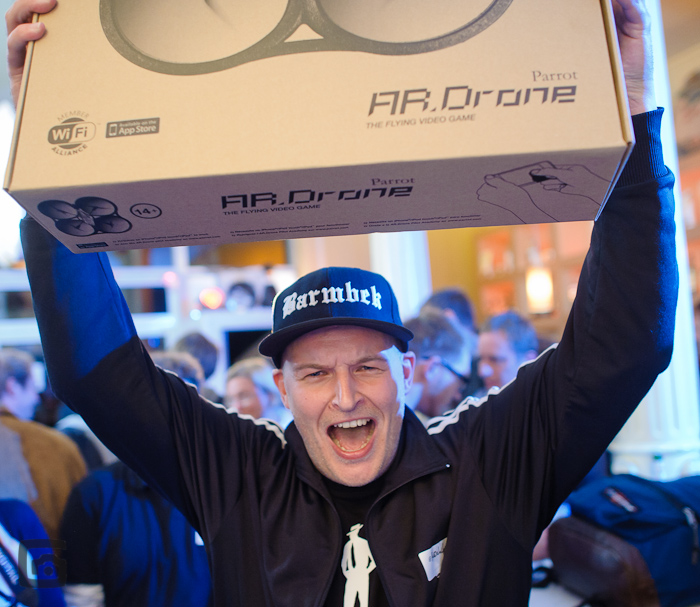 Zum 7. Mal fand gestern Abend das Social Media Klassentreffen Hamburgs statt: die Gadget Night. Auch diesmal waren wieder alle Plätze restlos ausgebucht. Und als Highlight des Abends gab es eine AR.Drone zu gewinnen. Dieses wunderbare Fluggerät, dass seit ein paar Tagen auch mit einem Androide Smartphone zu steuern ist. So’n Teil wollte ich ja eigentlich schon immer mal haben, daher war ich froh, dass ich gestern wenigstens mal sehen konnte wie gut es tatsächlich fliegt.
