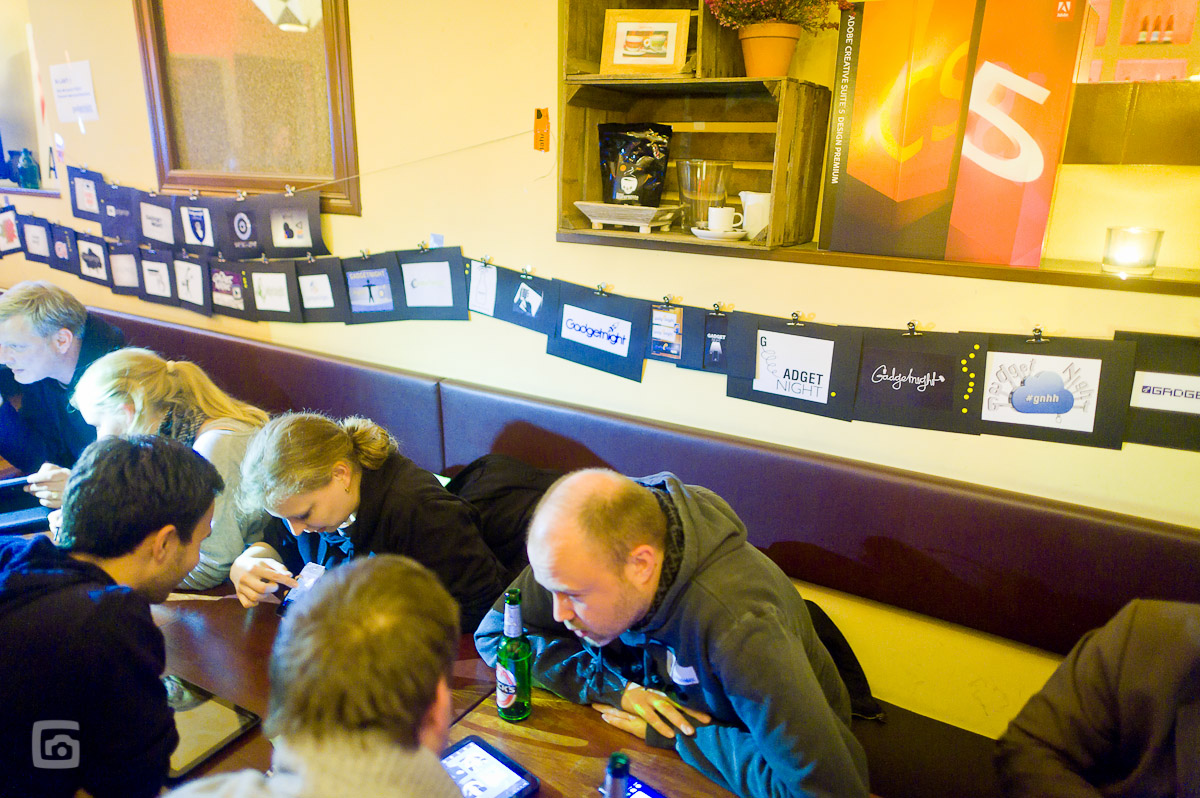 Für so einen tollen Preis reichte ausnahmsweise nicht die bloße Anwesenheit. Diesmal konnten die Interessierten im Vorfeld einen Vorschlag für ein Logo einreichen. Die Teilnehmer der Gadget Night haben dann mit einfachem analogem Voting (Punktekleben) aus den vielen Vorschlägen das Beste rausgesucht. Den Gewinner siehst Du bei Facebook.