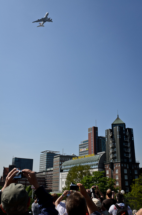 Kurz vor dem letzten Heimspiel des FC St. Pauli musste ich noch schnell zum Hafengeburtstag, um den A380 und eine JU-52 zu fotografieren. Da in Hamburg das Auslieferungswerk des A380 steht, ist ein solcher Rundflug immer wieder eine Attraktion.
