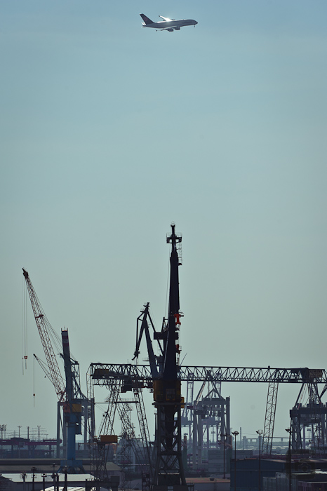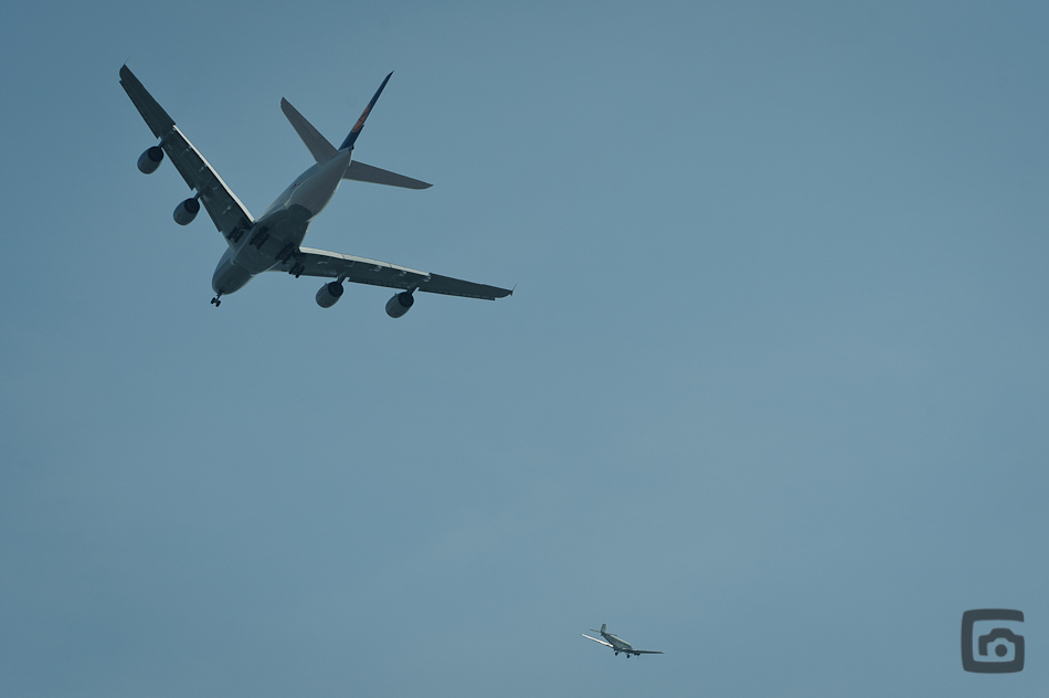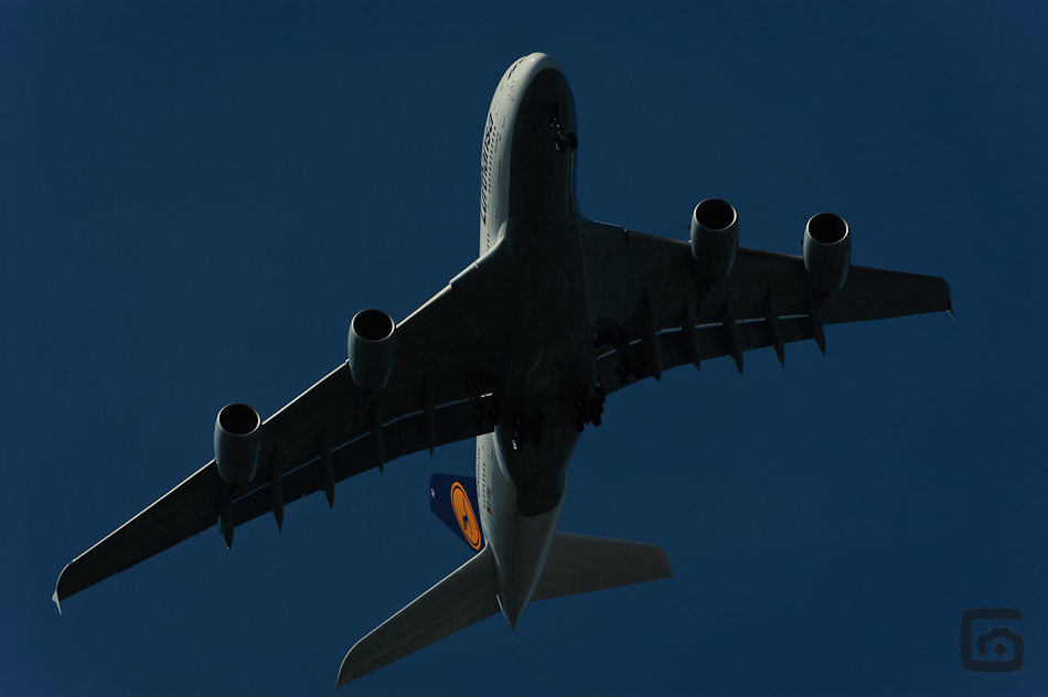 Folglich versuchte ich in der Kürze der Zeit – ich hatte nur eine Viertelstunde Zeit für die Aufnahmen – möglichst viele unterschiedliche Impressionen vom A380 einzufangen. Hilfreich war dabei natürlich, dass ich zwei Kameras einsetzen konnte. So waren Blickwinkel von 36mm (24mm an der D7000) bis 400mm möglich.