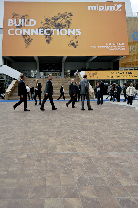 Zurück in Deutschland. Ich habe eine dicke rechte Hand. Das liegt an der guten Durchblutung nach drei Tagen Messeeinsatz in Cannes. Ich habe in Frankreich auf der MIPIM (der weltgrößten Immobilienmesse) für drei Stände (Hamburg, Berlin, ULI) fotografiert. Mein Auge war drei Tage auf der Motiv- und Blickwinkelsuche, mein Gehirn hat drei Tage lang die unterschiedlichsten Lichtverhältnisse zu meistern versucht und die Kameraautomatik war zu gefühlten 95% überfordert. Sonnenlicht, Glühlampenlicht, Lichtspots, Hinweistafeln mit Hintergrundbeleuchtung, Plasmabildschirme mit Animationen, LCD Bildschirme mit Slideshows, Reflexionen – so viele Lichtsituationen auf engstem Raum habe ich noch nicht erlebt.