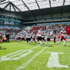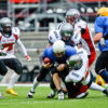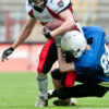 Ich dreh durch. Vor inzwischen über zehn Jahren hab ich selbst auch mal Football gespielt, damals in der 3. Liga. Aber die Jungs sehen heute zwei Ligen drunter schon so kräftig aus. Außerdem gab’s bei uns wesentlich weniger Zuschauer.
