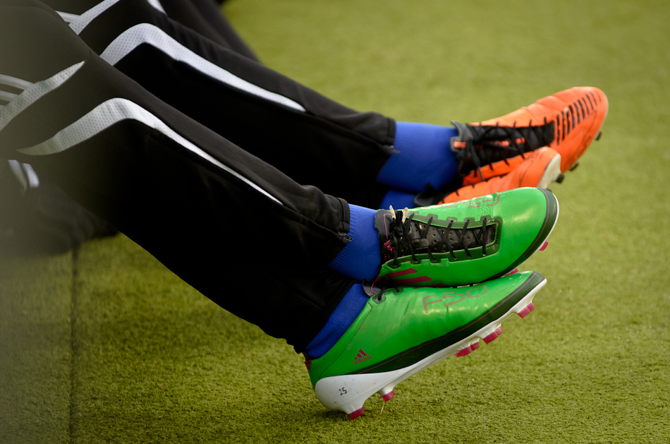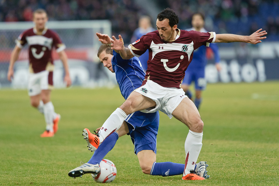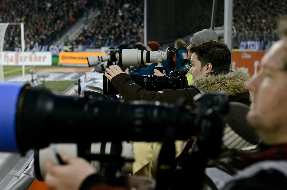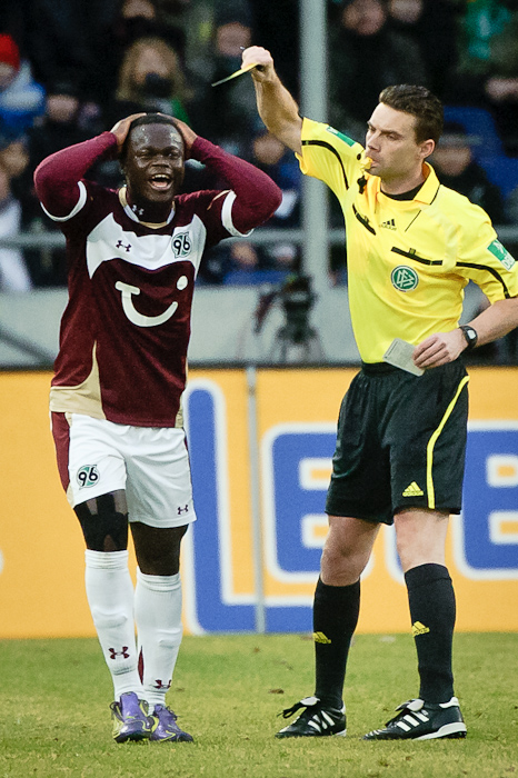 Und während ich in Hamburger Stadien vor dem Spiel die Spielfläche nach DFL-Statuten nicht betreten darf (und während des Spiels trotz Rückennummer natürlich auch nicht) und damit das tatsächliche Spielfeld gemeint ist, zählt in Hannover die Rasenfläche als Spielfläche. Mit freundlichen Worten werde ich auf die ca. ein Meter weiter weg beginnende Kunstrasenfläche hingewiesen und zurückgebeten.