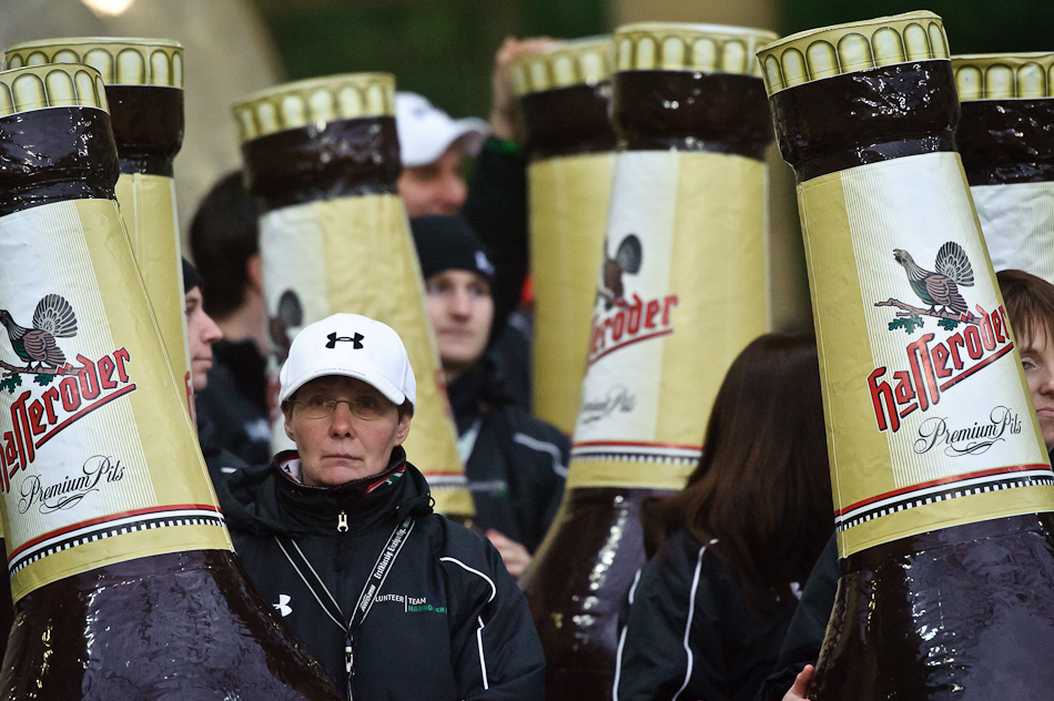 Toll auch, wenn ich extra vorher bei Verantwortlichen nachfrage, wo ich denn am Spielfeldrand sitzen darf, wenn ich dann bei Spielbeginn auf die winzigen verwaschenen grünen Striche im Asphalt hingewiesen werde, die von den Kabeln der Fernsehkollegen fast vollständig bedeckt werden. „Hinter die Striche“ und „Auch mit dem Equipment“ lauten die kurzen hektischen Befehle des einzig halbwegs unfreundlichen Security-Menschen. Und so räume ich meine Sachen 20 Zentimeter weiter nach rechts.