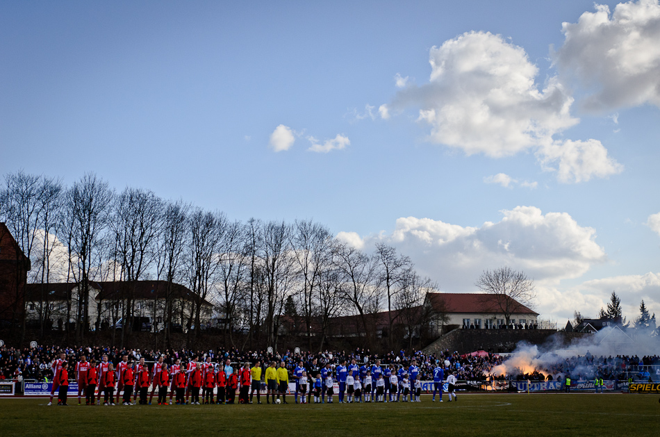 Tja, aber dann habe ich Sebastian kennengelernt. Der Fotograf kam vor dem Spiel auf mich zu und begrüßte mich mit den Worten: „Bist Du Stefan Groenveld?“ Und auf mein „Ja“ leuchteten seine Augen: „Dann freue ich mich schon jetzt auf Deine Bilder.“ Sebastian ist Fotograf für Hansa Rostock und schaut hier gerne vorbei, weil er meine Bilder mag – „auch, wenn sie vom falschen Verein sind“. Sehr sympatisch, sehr freundlich und ein wahnsinnig tolles Lob für meine Arbeit über das ich mich sehr gefreut habe. Ich hoffe, meine Bilder gefallen Dir, Sebastian 🙂