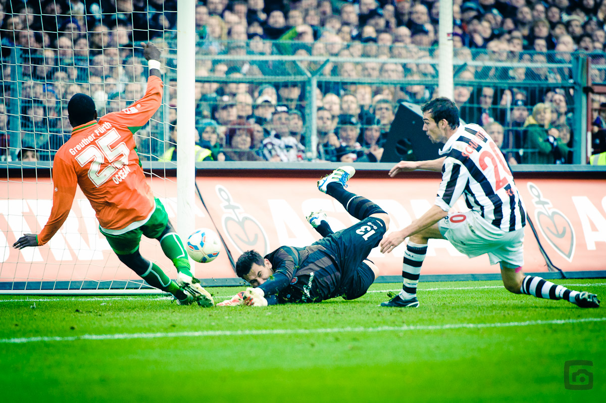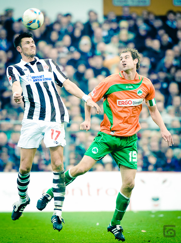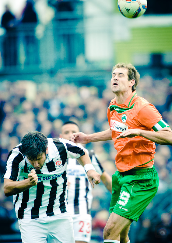 Nach einem solchen Spiel, wie beim dem vom FC St. Pauli gegen die Spielvereinigung aus Vestenbergsgreuth und Fürth am vergangenen Samstag, finde ich es immer schwer die passenden Bilder zu finden. Jubelnde Spieler, die einen Rückstand gegen eine stark verteidigende Mannschaft aufgeholt hatten? Nach den turbulenten Schlussminuten dann wohl doch eher enttäuschte Spieler, denn eine Führung gegen 10 Mann nicht verteidigen zu können, tut immer weh. Auf hohem Niveau genügen eben auch kleine Fehler, um den Ball im Netz zappeln zu sehen.