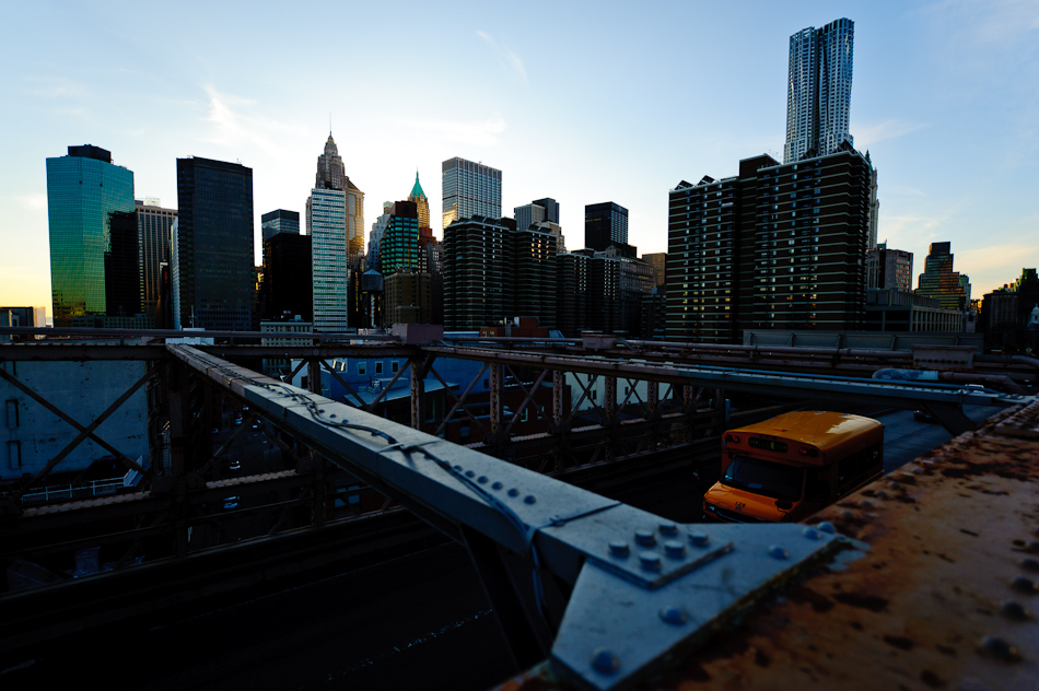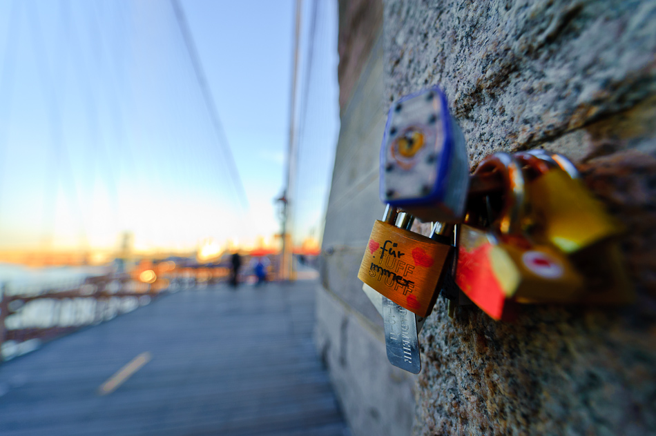 … auf die Brooklyn Bridge sind wir zum Sonnenuntergang. Geniales Licht und herrliche Farbübergänge, die man dort festhalten kann.