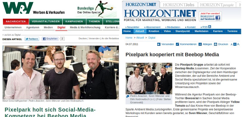 Gestern ist es öffentlich geworden: es gibt nun eine Kooperation zwischen beebop und Pixelpark. Letzten Dienstag war ich deswegen in den heiligen Hallen von beebop und habe das entsprechende Pressefoto dafür gemacht.