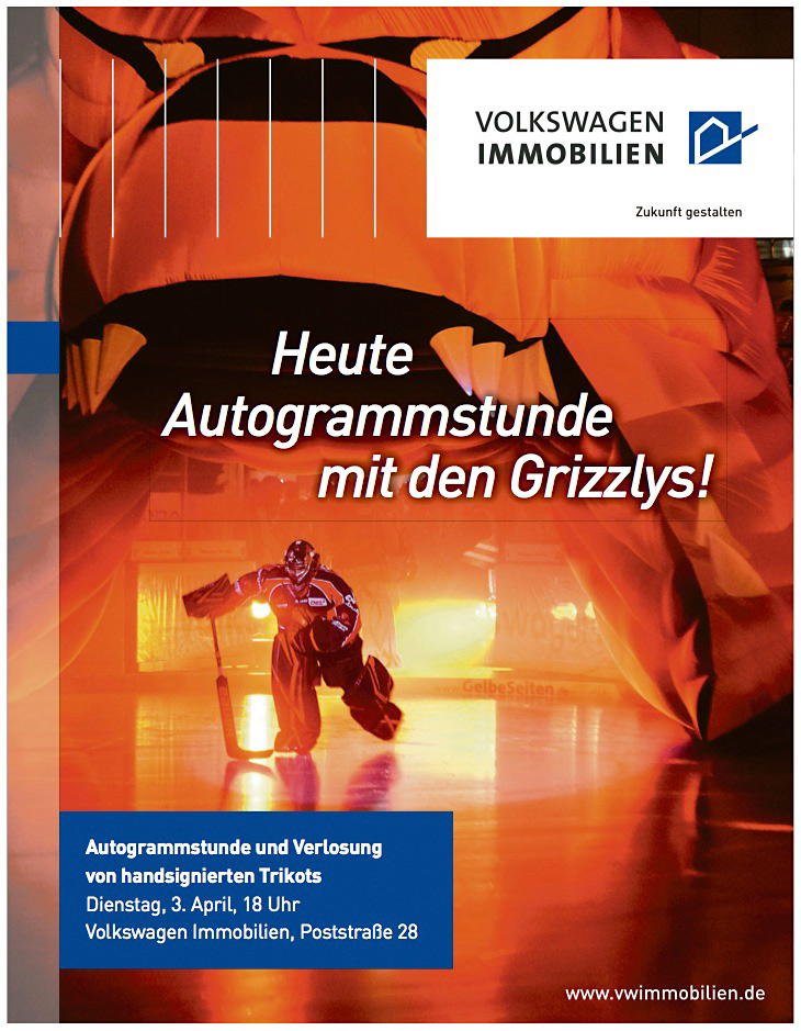 Ich besuchte also erstmals die Stadt Wolfsburg – und wenn ich gewusst hätte, dass da gerade eine Cartier-Bresson Ausstellung ist, wäre ich auch früher hingefahren. So kam ich in eine für Hamburger Verhältnisse kleine Halle, die mit fast zweieinhalbtausend Besuchern auch nicht ganz gefüllt war, aber im Laufe des Spiels eine ohrenbetäubende Atmosphäre entwickelte. Außerdem fand ich deutlich bessere Bedingungen für Fotografen vor, als ich das in Hamburg gewohnt bin. In der O2 World gibt es 3 freie Scheiben für Fotografen hinter denen sich 2 bis 5 Leute drängeln, um eine Spielszene einzufangen. In Wolfsburg kann sich jeder Fotograf auf rund Dreiviertel des Eisumlaufs frei bewegen. Wirklich sehr angenehm. Nur die Möglichkeit zwischen die Trainerbänke zu kommen, die es in Hamburg wenigstens eingeschränkt gibt, findest Du im Wolfsburger Eisstadion nicht. Egal, ich würde trotzdem wieder hinfahren.