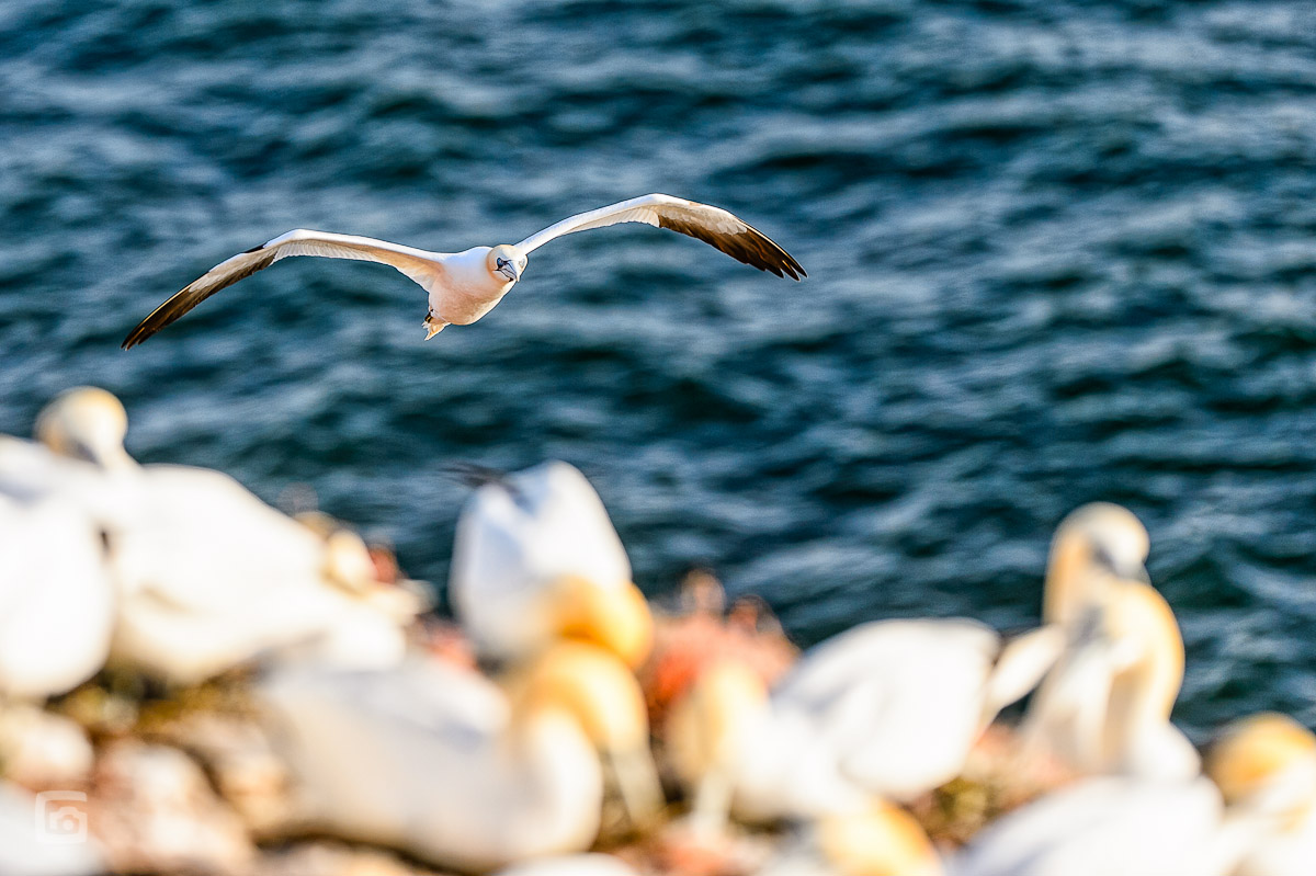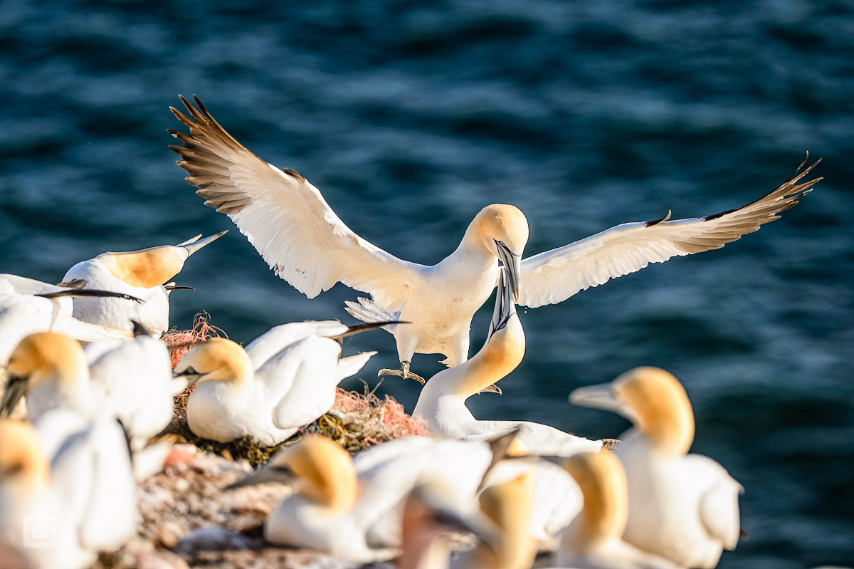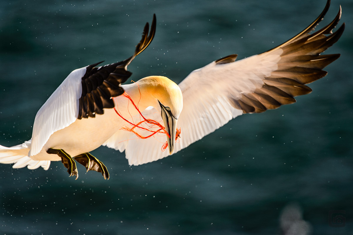 Während ich bei der Ankunft am berüchtigten Lummenfelsen – dem einzigen Vogelfelsen Deutschlands – sofort dem Jagdfieber nach fliegenden Motiven verfallen bin, schaute meine Liebste sich erstmal um. Während ich glücklich war, endlich einen fliegenden Basstölpel mit irgendwas im Schnabel abgelichtet zu haben, hatte meine Liebste schon die fatalen Folgen des von mir fotografierten Nestbau-Materials entdeckt. Tote Basstölpel und Trottellummen!