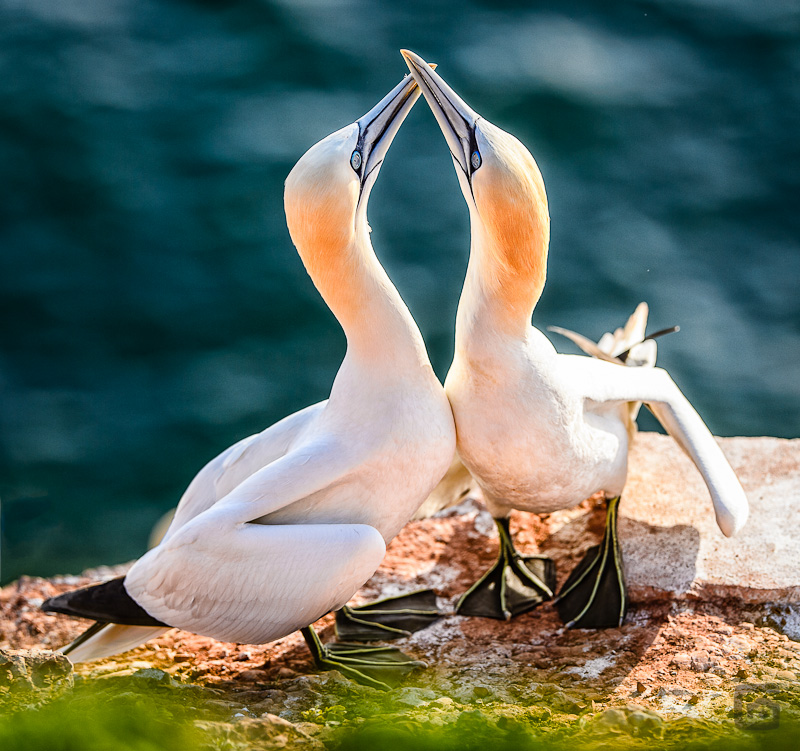 Bei meinem Trip nach Helgoland freute ich mich schon im Vorfeld auf die Fotosafari am Lummenfelsen. Ich wusste, dass es dort sehr gut möglich ist, Basstölpel und Trottellummen zu beobachten. Dabei hatte ich ein seltenes Vergnügen: meine Liebste war nämlich auch dabei. Also nicht nur meine Kamera, sondern auch meine Angetraute. Und sie hatte auch eine Kamera im Gepäck. Bei unserer Fotojagd haben wir dann festgestellt, dass wir total unterschiedliche Dinge sehen. Und so kommt es, dass diese Bildergeschichte eine Koproduktion ist!