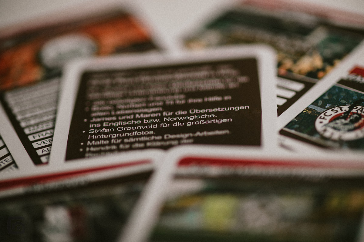 Seit wenigen Spieltagen kannst Du nun mit dem Quartett dein Wissen über die Sankt Pauli Fanszene spielerisch erweitern. Das erste Feedback war grossartig. Kein Wunder, die Fanclub-Informationen sind sehr liebevoll zusammengestellt. Und beim Kauf tust Du auch noch gutes, denn sämtliche Gewinne aus dem Verkauf des Quartetts gehen an USP Antirazzista, Fanräume e.v. und U18-Ragazzi. Da alle ehrenamtlich gearbeitet haben, müßte da der ein oder andere Euro zusammenkommen.