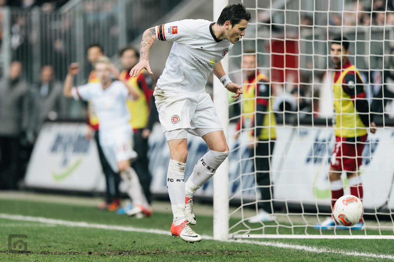 Besonders in der ersten 12 Minuten und 12 Sekunden konnten die am Millerntor Anwesenden, die Knaller an den Pfosten gut hören. Daraus ergibt sich dann die für mich schönste Geschichte des Spiels – nach dem Spiel in der Mixed Zone gab nämlich Jan-Philipp Kalla zum Besten: