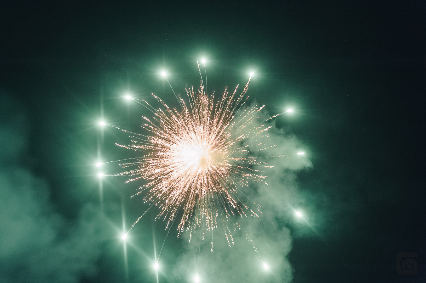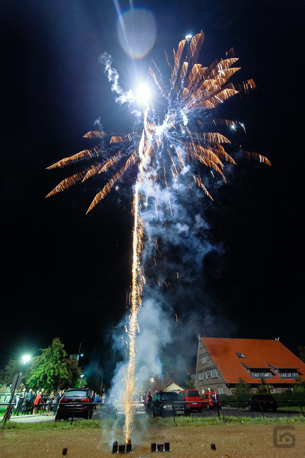 Der Trick beim Fotografieren eines Nachthimmels mit Feuerwerk ist das Ausschalten der Automatik. Wichtig sind längere Belichtungszeiten, die bei niedrigen ISO Zahlen mit eigentlich allen Kameras gute Ergebnisse hervorzaubern. Hilfreich ist dabei natürlich ein Stativ. Meine Bilder hier sind alle ohne Stativ entstanden. Das hängt damit zusammen, dass auf Hochzeiten das Feuerwerk eher kurz ist und ich möglichst viele unterschiedliche Perspektiven erwischen will. Wenn Du Feuerwerk fotografierst, wird das deutlich geplanter ablaufen. So kannst Du Dir vorher dazu Gedanken machen, wo Du Dich und Deine Kamera aufbaust. Besonders schön ist es immer, wenn nicht nur das Feuerwerk zu sehen ist, sondern auch etwas von der Umgebung.
