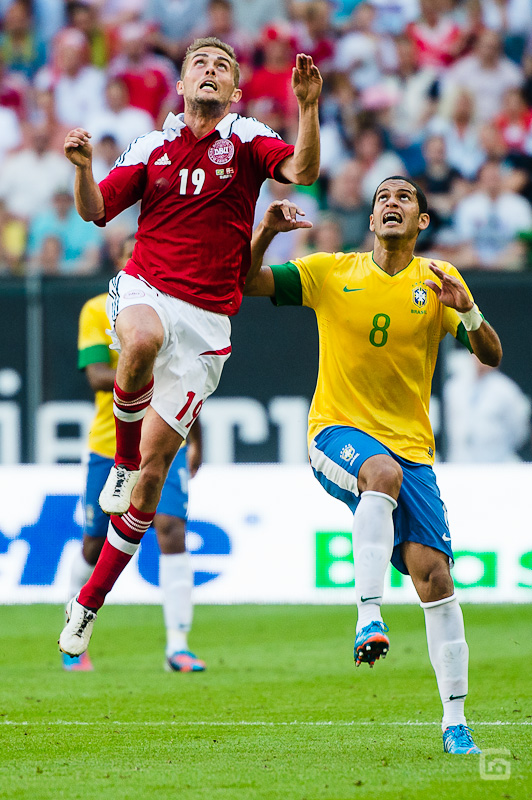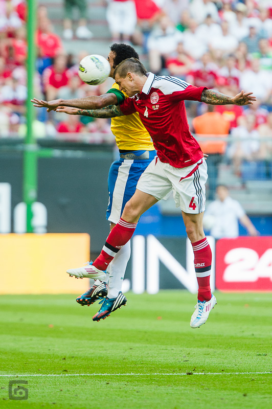 Letztlich war es trotzdem wieder ein tolles Erlebnis beim Fussball ein Länderspiel zu fotografieren, auch wenn längst nicht soviel los war wie bei einem Spiel mit deutscher Beteiligung. Die Brasilianer bärenstark, brachten mit einem lupenreinen Hattrick durch den unglaublichen Hulk das zu Dreiviertel mit – zumindest in den ersten 5 Spielminuten – euphorischen Dänen besetzte Stadion schnell zum Schweigen. Nur gut, dass Brasilien nicht bei der EM mitmachen darf.