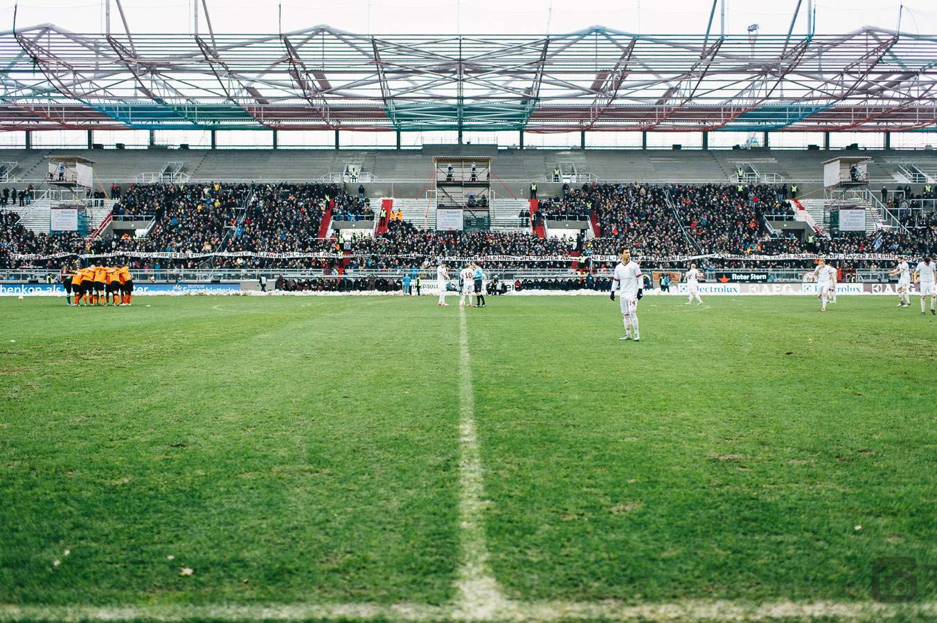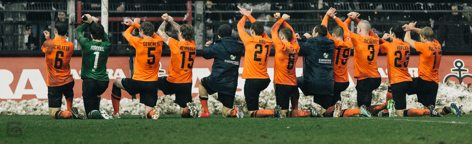 Aber apropos Beschriftung: Die gekreuzten Arme der Auer Mannschaft symbolisieren etwas ganz anderes (Zwei gekreuzte Hämmer aus dem Steigerlied / der Vereinshymne) als die gekreuzten Arme der Fans auf unserer Süd (Diffidati con noi).