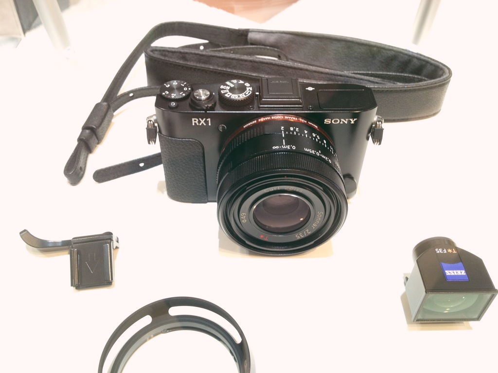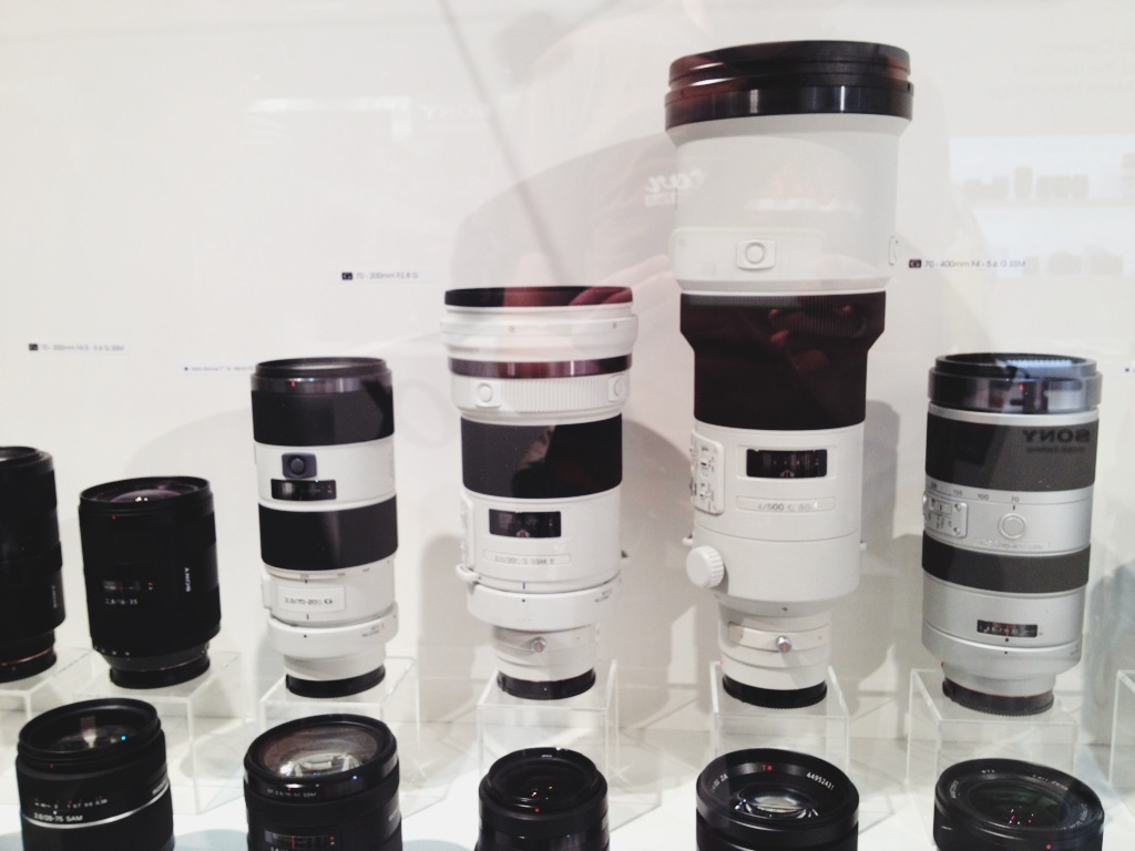Hinter Glas war übrigens die Sony RX1, die erste Kompakte mit Vollformatsensor. Ich habe die Promoterin aber sehr glücklich gemacht, als ich meinte, dass die RX1 eine kleine Leica M für’n halben Preis sei. Vermutlich weiß sie nun endlich, was Sony mit diesem Produkt bezwecken will. Mir persönlich kommt das nämlich tatsächlich etwa so vor als ob Sony einfach mal schauen will, was technisch so geht. Hoffentlich verzetteln die sich nicht. Mit den A-Modellen wollen sie ja auch in den Profi-Fotografenbereich und daher war ich schon erstaunt, dass das 300mm f/2.8 noch teurer ist als die auch nicht gerade preiswerten Geschwister von Nikon und Canon.