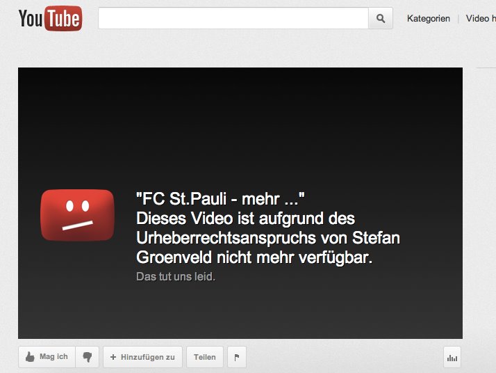 Was die Formulierung von Youtube angeht, so kann man das differenziert sehen. Würden sie bedauern, daß die Urheberrechtsverletzung passiert ist, so würden sie vermutlich den Eintrag ganz aus der Datenbank entfernen. So muß man das aber wohl so nehmen, wie es da steht und dann wohl auch die Schlußfolgerung daraus ziehen „wir hätten gerne weiter beim Klauen geholfen, durften das aber nicht“. Beim ersten Mal schluckt man. Beim zweiten Mal denkt man sich vielleicht, daß eine solche Einlassung vor Gericht ziemlich ungeschickt wäre. Wer weiß, wozu das nochmal gut ist …
