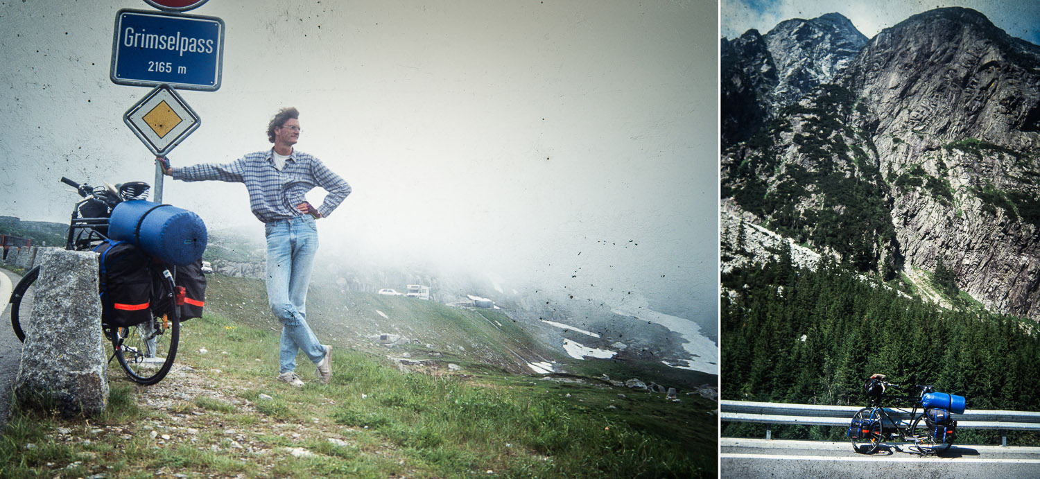 Noch was aus’m Archiv, denn ich wollte dann doch den Beweis antreten, dass ich mein aktuelles Fahrrad schon etwas länger in Gebrauch habe. 1989 bin ich damit die Alpen überquert und zum Gardasee gefahren. Mit Zelt, Schlafsack, Isomatte, Benzinkocher, Töpfe und Klamotten für drei Wochen. Ja, in Jeans…