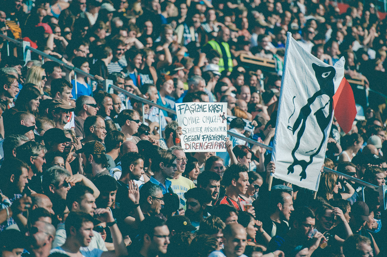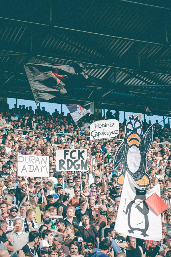 Wichtig war bei diesem Freundschaftsspiel das Zwischenmenschliche: afrikanische Flüchtlinge berichteten vor den Fanräumen von ihren Erlebnissen und eine Fantrennung zwischen Besiktas und Sankt Pauli Fans gab es nicht wirklich. Allerdings nutzen die lautstarken Besiktas Anhänger die gute Akustik in der Nord aus – vor allem die Carsi, die „Ultra Besiktas“. Eine Fangruppierung, die auch bei den aktuellen Auseinandersetzungen rund um den Gezi Park durchaus aktiv geworden sind. Daher hagelte es an allen möglichen Ecken, Sympathiebekundungen im Stadion.