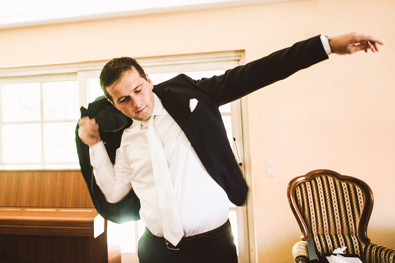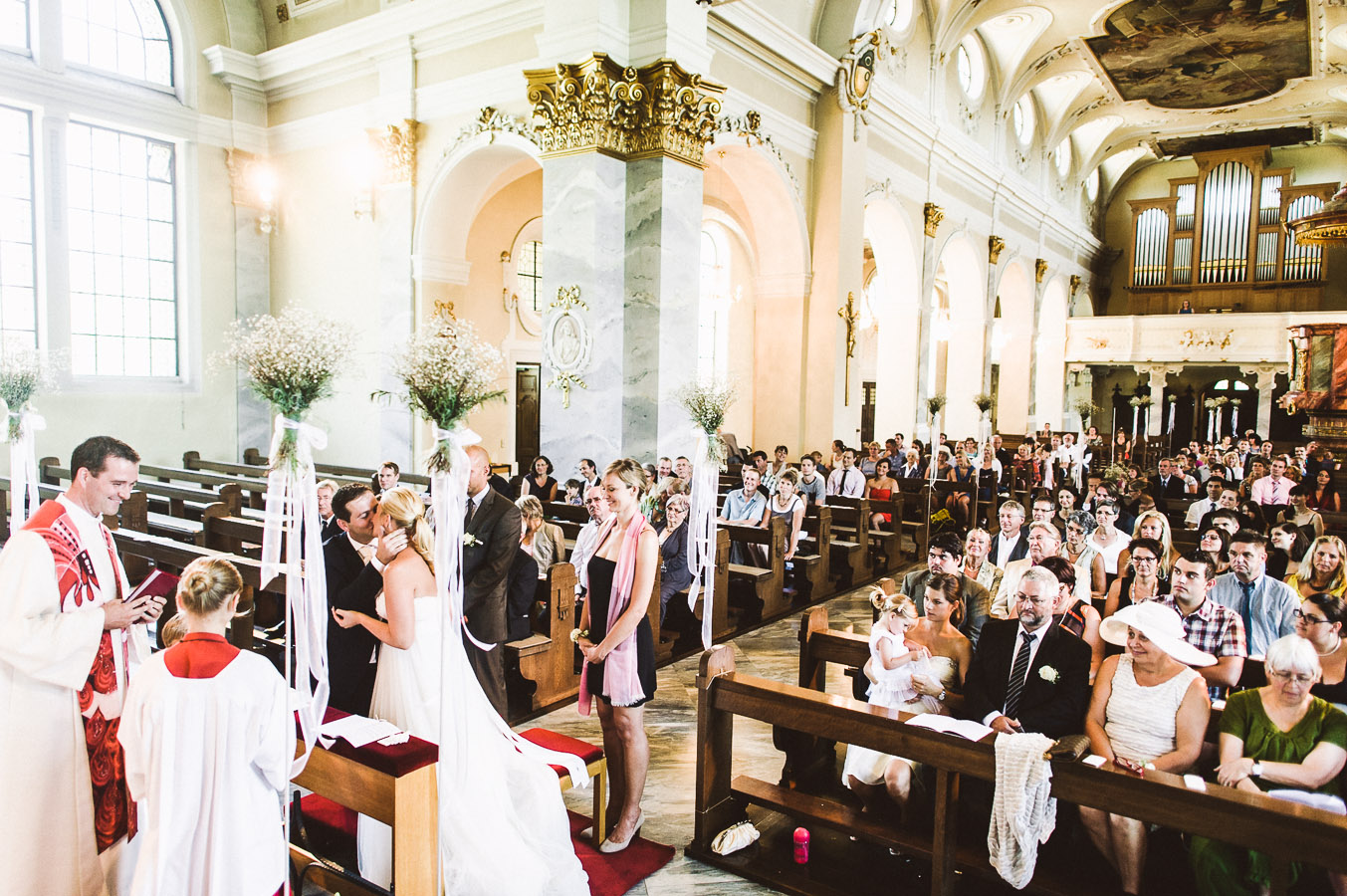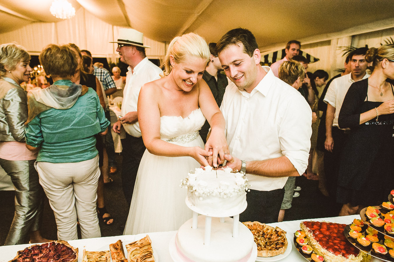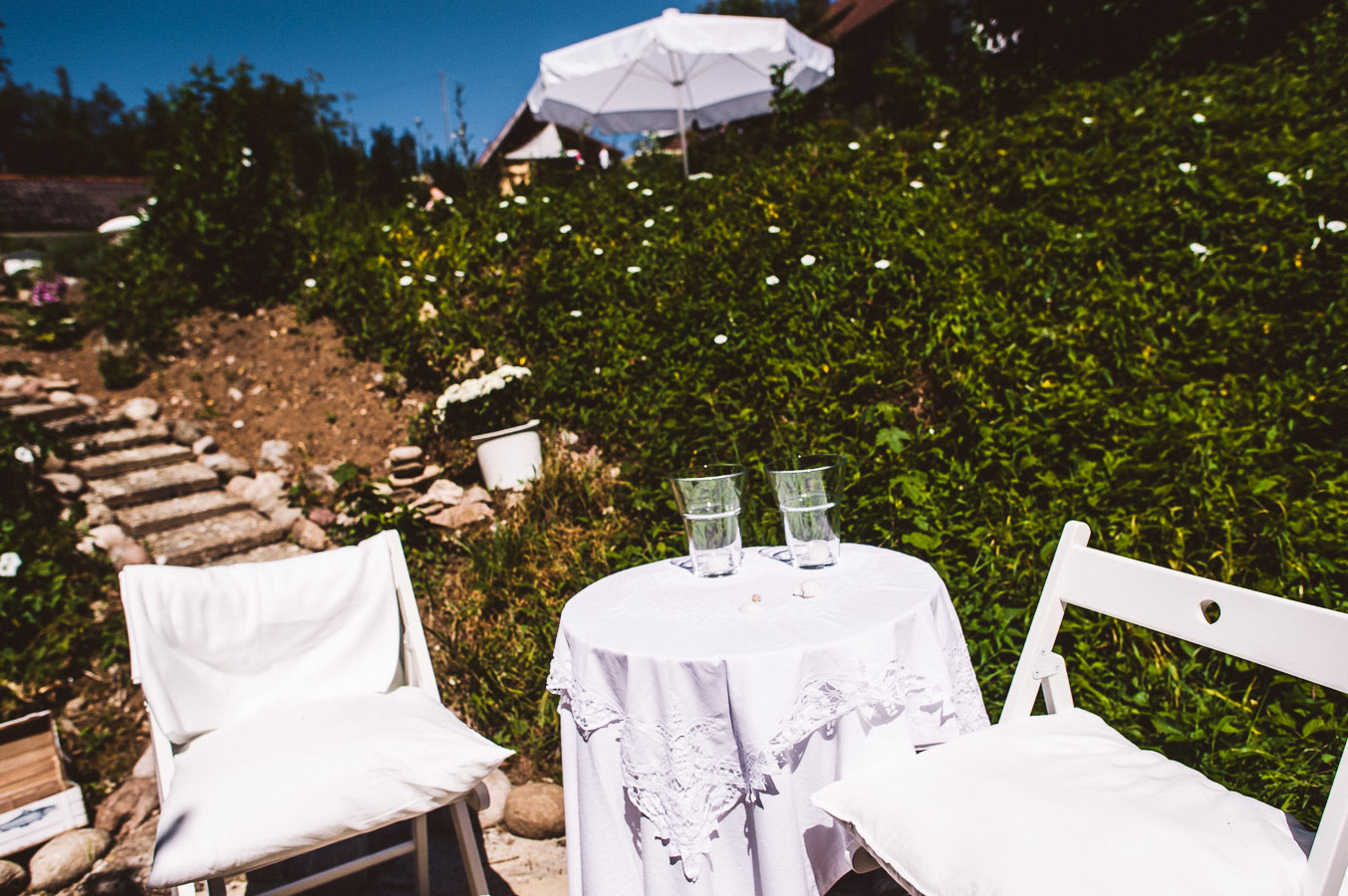 Die Hochzeit fand am heißesten Tag des Jahres statt – das Thermometer kletterte an dem Tag auf 33°C, selbstverständlich im Schatten. Und als ich eine Woche später auf der nächsten Hochzeit unterwegs war, erreichte mich eine SMS der Braut: „Gut, dass wir letztes Wochenende geheiratet haben. Hier regnet es den ganzen Tag…“