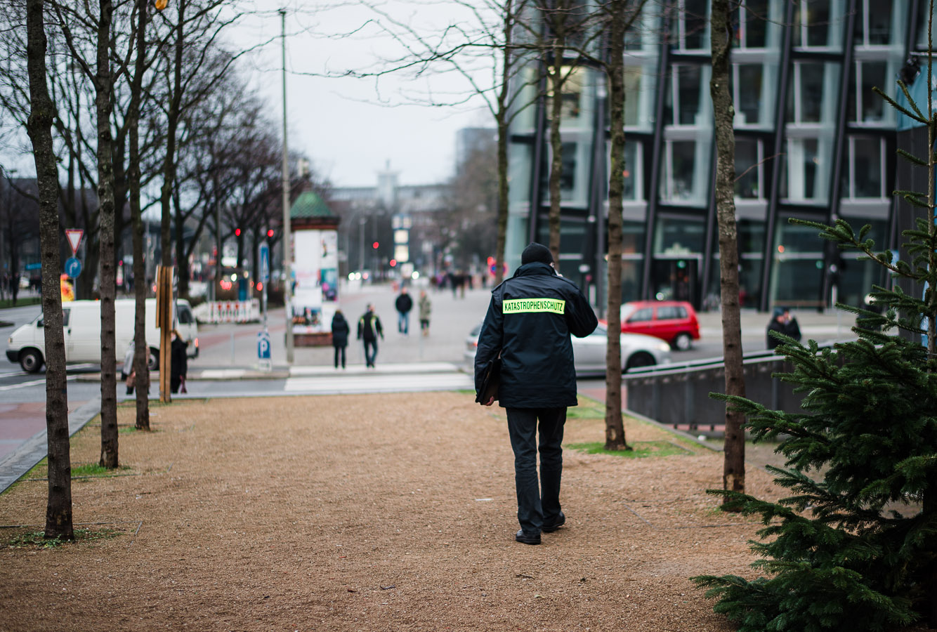 Just in dem Augenblick, als ich am zur Absperrung errichteten Zaun ein paar Fotos machen wollte, kamen gerade etliche der Bewohner der Häuser vorbei und zogen mit ihren wenigen Habseligkeiten in das große Zelt am Spielbudenplatz. Ein paar Tüten, ein Käfig, Kaninchenstreu,… Mir ist zum Heulen.