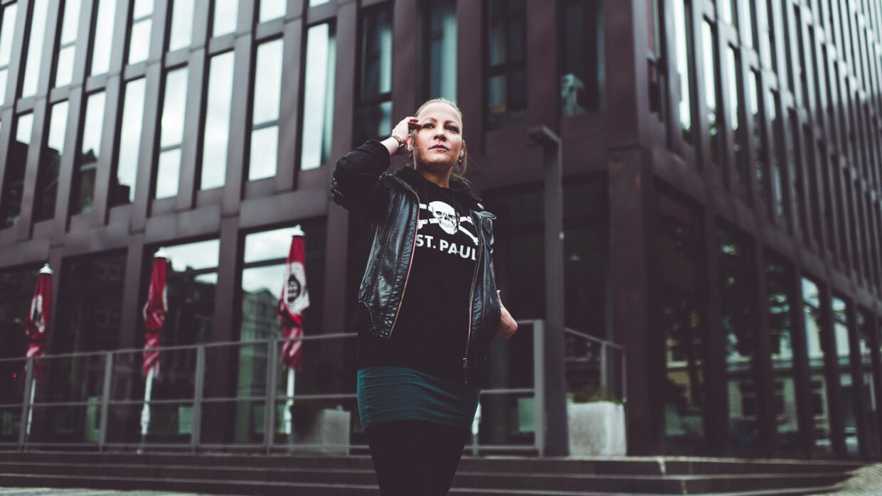 Alex habe ich im Partywagen auf der Fahrt aus Kaiserslautern kennengelernt. Es stellte sich sehr schnell eine angenehme Gesprächatmosphäre ein, die auch nichts mit der nicht besonders nüchternen Umgebung zu tun hatte, in der wir uns befanden. Wir blieben nach der Fahrt in diesem modernen Ding namens Facebook in Kontakt und trafen uns bei der ein oder anderen St.-Pauli-affinen Veranstaltung in RL. Irgendwann erwuchs bei Alex – die nach eigener Aussage auf Fotos immer „blöd“ aussieht – der völlig absurde Wunsch, fotografiert zu werden. Von mir!