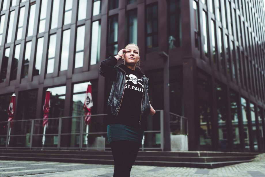 Ja, das hat natürlich seinen Preis: in diesem Fall meinen Wunsch nach Blitzlichtfotografie am hellichten Tag. Die arme Alex hatte sich echt auf was eingelassen: stundenlang musste sie so tun, als ob sie Spaß hätte, mit einem nahezu doppelt so alten Kerl durch Sankt Pauli zu ziehen. Darüber hinaus war es herbstlich kühl und sah nach Regen aus, als wir unsere fotografische Entdeckungsreise begannen.