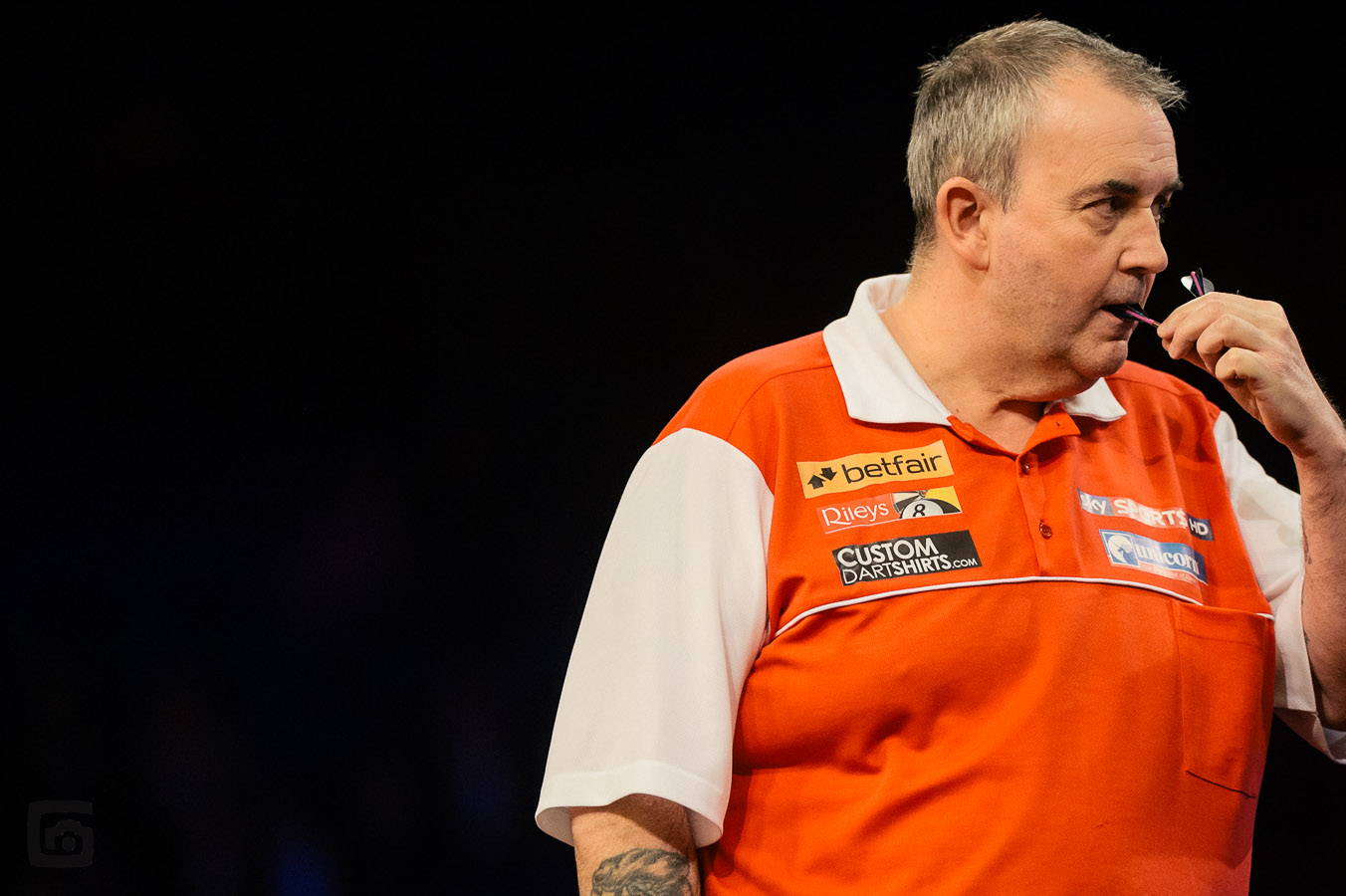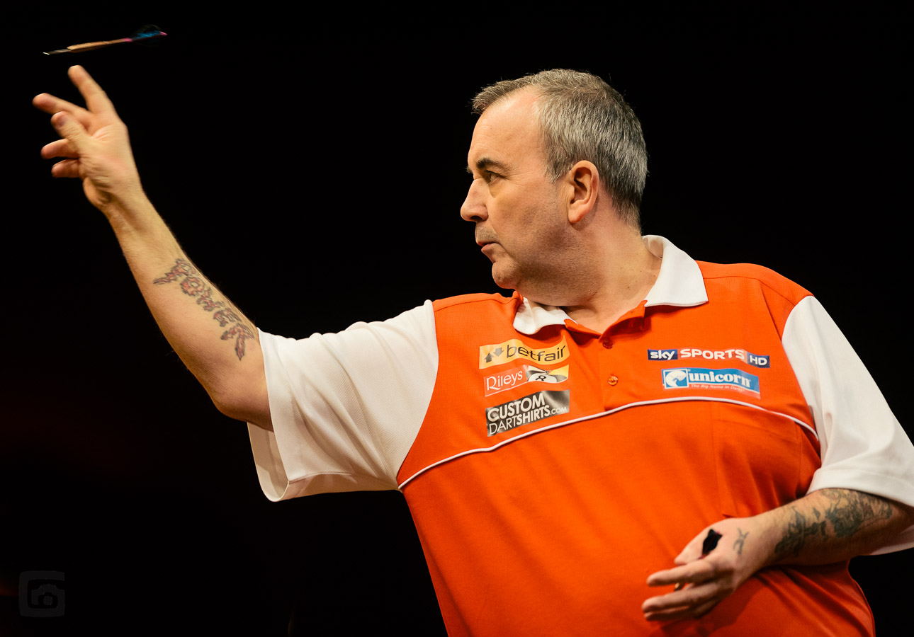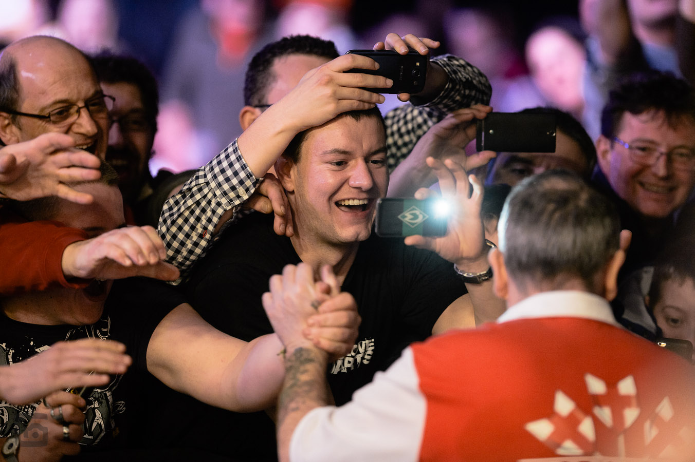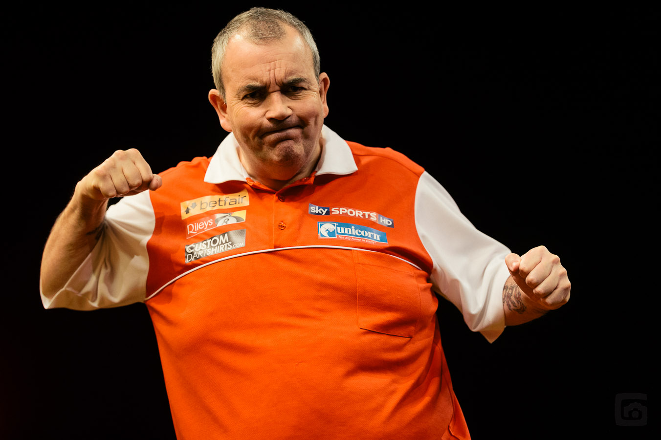 Besonders neugierig war ich natürlich auf Phil Taylor aka The Power. Einen 16-fachen Weltmeister hat man ja nicht täglich vor der Linse. Er begrüßte erst mal seine Fans herzlich, brachte damit die Ordner ordentlich durcheinander, feixte sich eins und gewann mit seinem Partner Adrian Lewis in einem sehr spannenden Duell gegen die Mannschaft aus Südafrika denkbar knapp.
