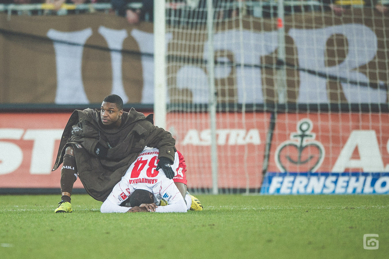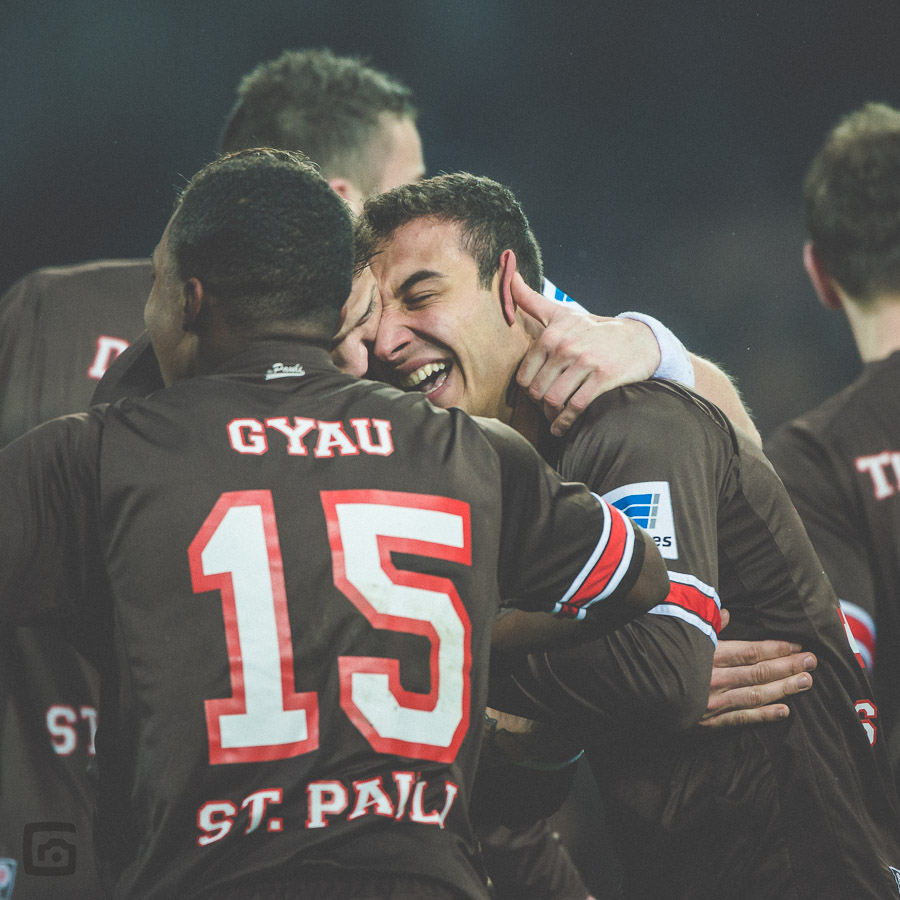 Allerdings muss ich wohl meine Sitzposition im Stadion überdenken. Die jubelnden Spieler laufen neuerdings immer von mir weg. Deswegen gibt es vom letzten Torjubel nur ein Bild von der „falschen“ Seite.
