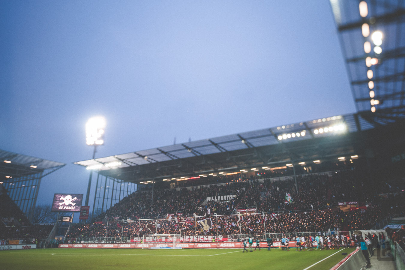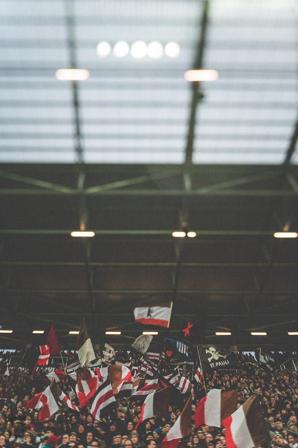 So, und nun schaut euch noch mal das erste Bild der Galerie an, denn so schnell seht ihr das Fahnenmeer dort nicht mehr. Die selbstgenähten Fahnen wurden nach dem Spiel auf dem Weg nach Hause dem Fahnenträger gewaltsam entwendet. Vermutlich von Leuten, die diese Farben sowieso nicht mögen. Vermutlich wollten die Entwender eine standesgemäße Derbysiegerfeier begehen. Aber da hätten sie doch auch mal nett fragen können, ob sie sich die Fahnen mal ausleihen können…