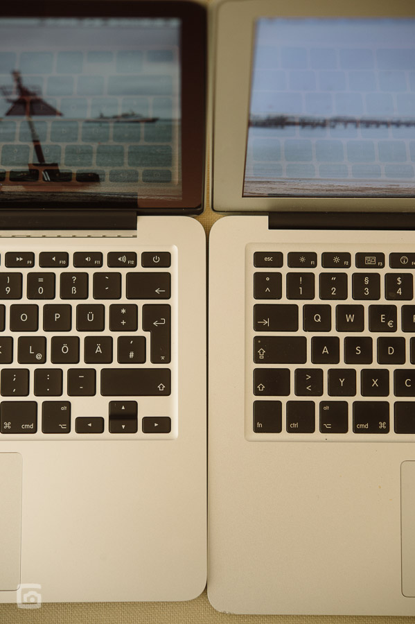 Was sonst noch auffällt: das Macbook Pro ist geringfügig kleiner als das Air gleicher Monitorgröße. Das Gewicht vom Pro ist nicht ganz 300g höher als beim Macbook Air.