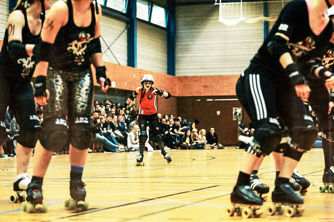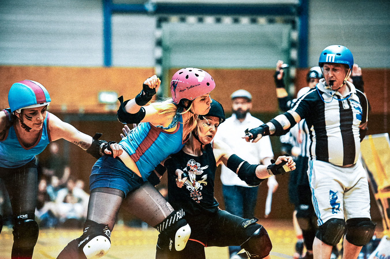 Zum 5. Geburtstag der Harbor Girls bestand der Vorteil darin, gleich zwei Kämpfe – sogenannte Bouts – sehen zu können. Das erste Match bestritten die Harbor Girls gegen Prague City Roller Derby und im zweiten Bout ging es gegen Inglorious Bombshells & Friends aus Berlin. Letztere waren kurzfristig eingesprungen, da das eigentlich vorgesehene Team doch noch abgesprungen war. Es entwickelte sich ein packendes Spiel, das die Harbor Girls verdient mit 151:114 für sich entscheiden konnten. Mittlerweile sind die Bombshells aus Berlin übrigens Deutscher Meister geworden – es wurde also wirklich Roller Derby auf hohem Niveau geboten.